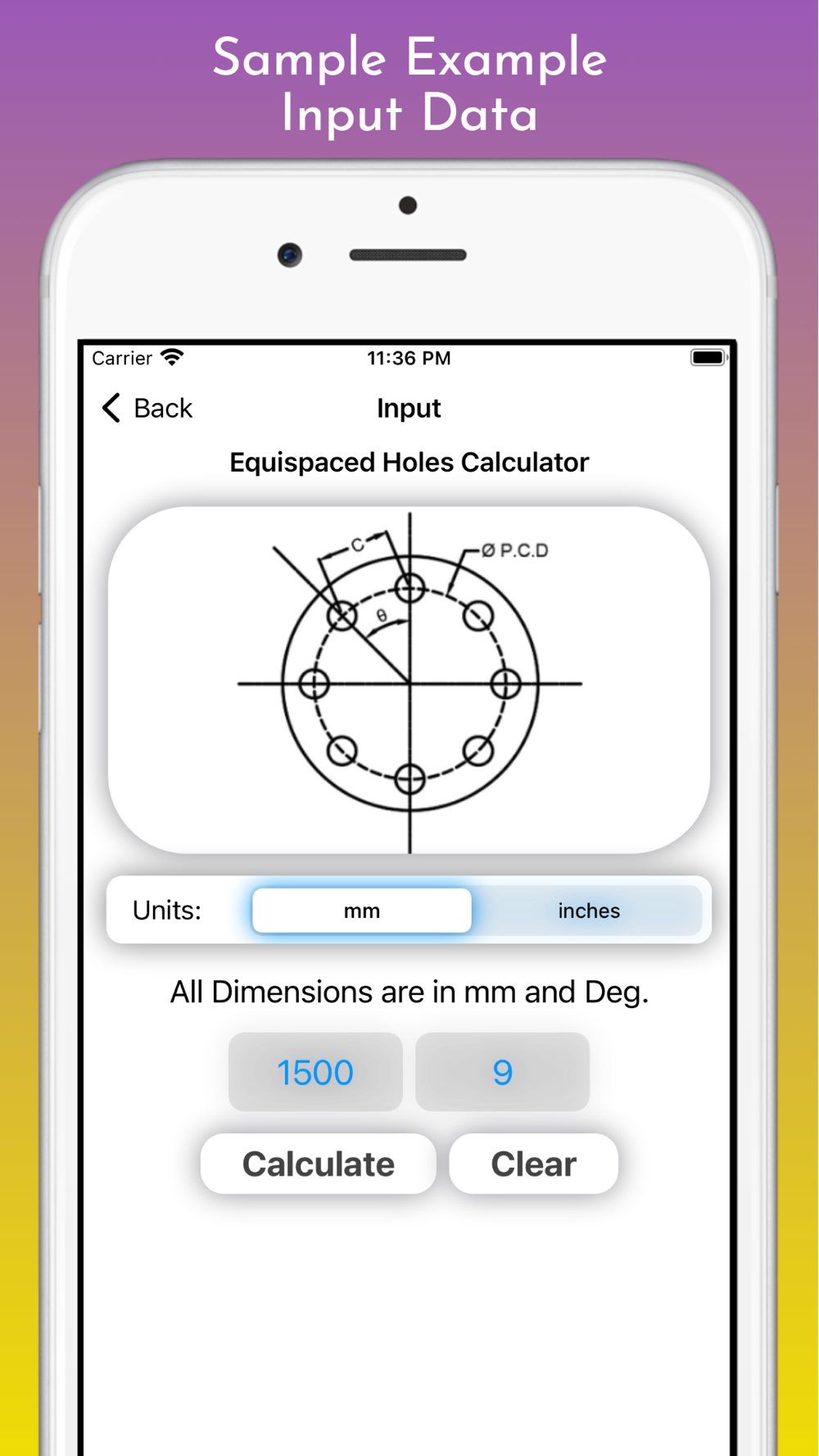 In this app Inputs required only pitch circle diameter ( PCD )or bolt-hole circle diameter ( BCD ).