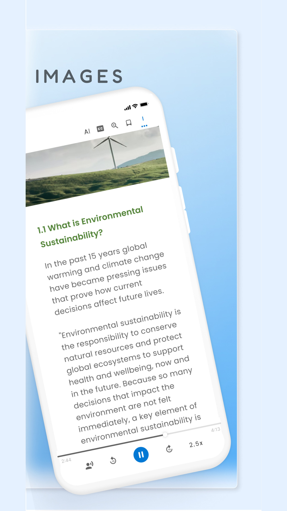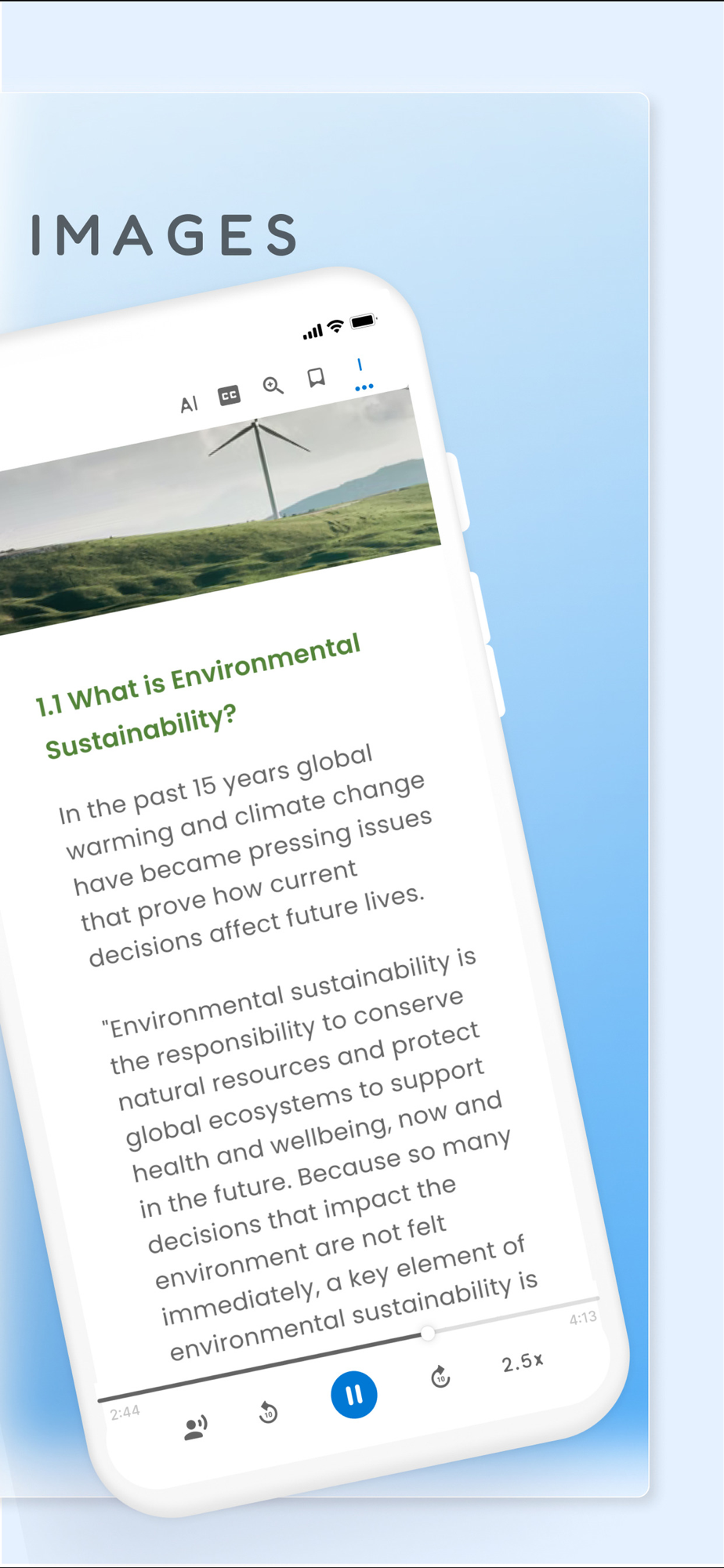 Just like a podcast or audiobook, our app lets you be productive anywhere with your mobile device. Complete readings laying in bed, during your daily commute, or walking around campus. By listening on the go, you create more time to do what you love.