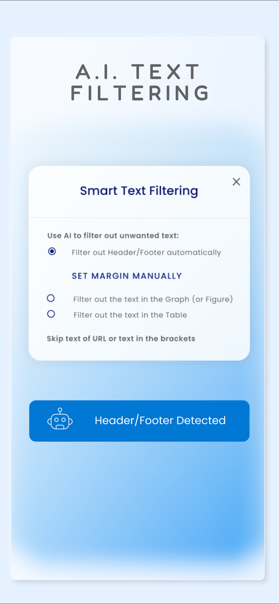 -- AI Text Filtering: Choose to filter out distracting and unwanted text such as URLs and text within brackets. Our advanced AI technology will detect these types of text and ignore them, limiting any distractions.