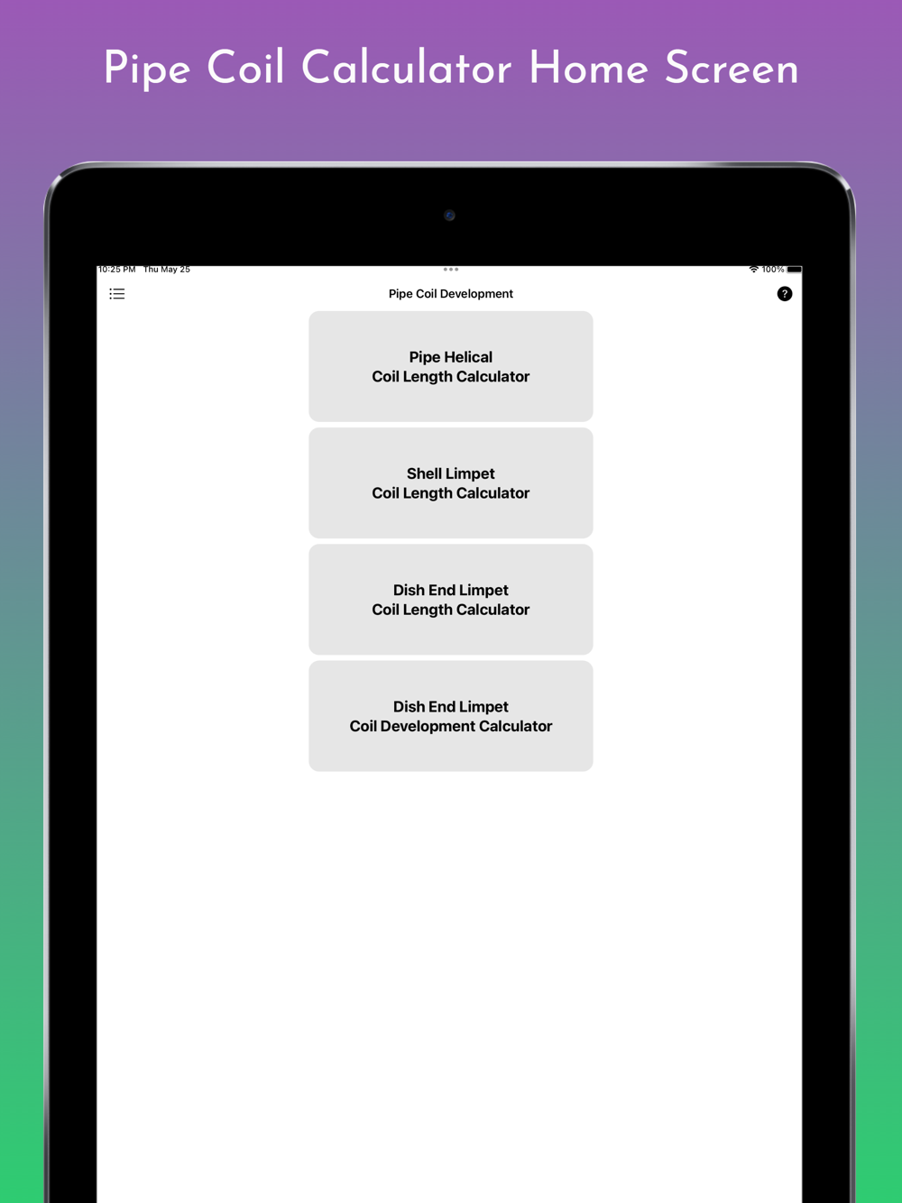 This App Calculate Limpet Coil Layout Development, Shell Limpet Coil Length, Dish End Limpet Coil Length, Internal / External Pipe Coil Length. It is also useful for Half Pipe Coil Jacket Length Calculation and Half Pipe Jacket Coil Length on Dish Ends and Shell.