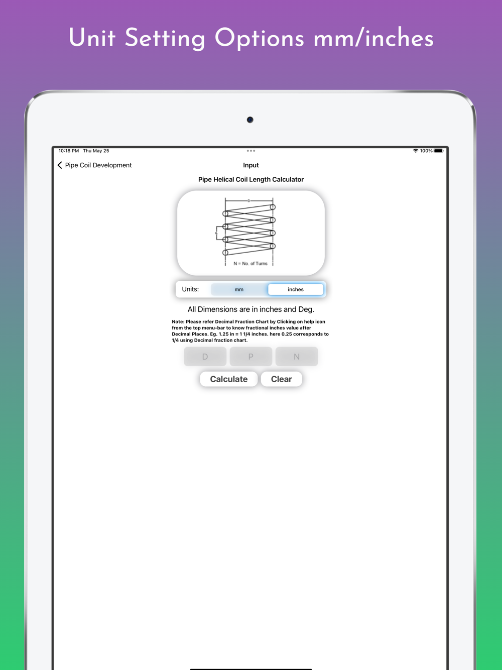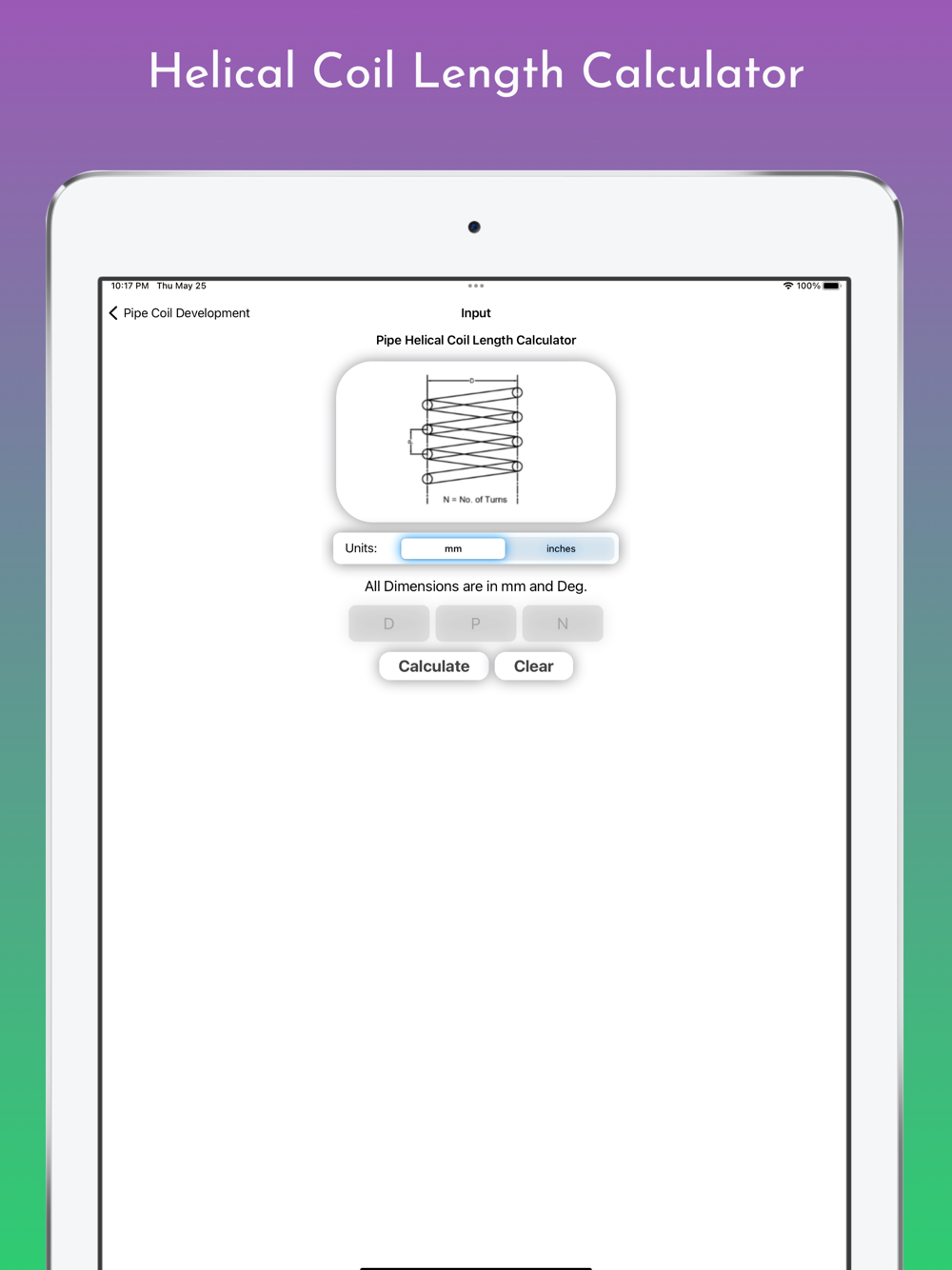 In This App length of Coil for Limpet on Shell Calculate by using Input as Shell Diameter, No. of Turns, Pitch of the Coil. You Can Easily estimate length for Coil for Costing and estimating Purpose.