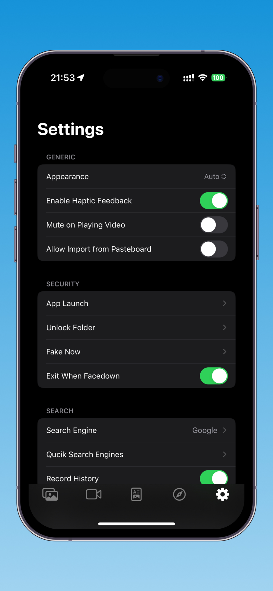 - Password Protection: Safely secure your private photos, videos, and files by setting a password.