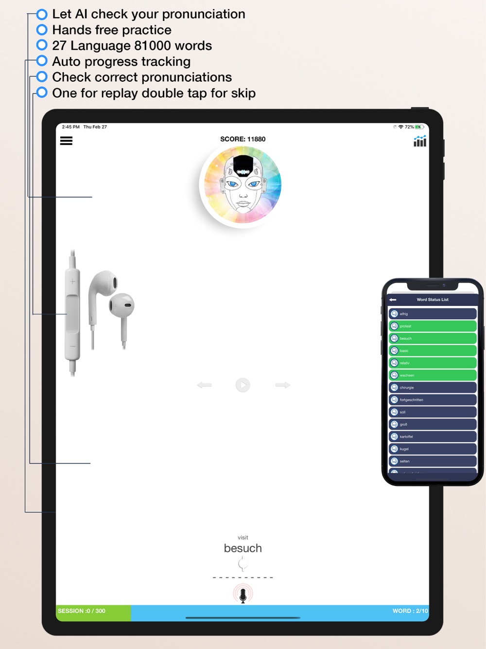 * AI powered advanced language practice tool. Let your smart device do smart things :)