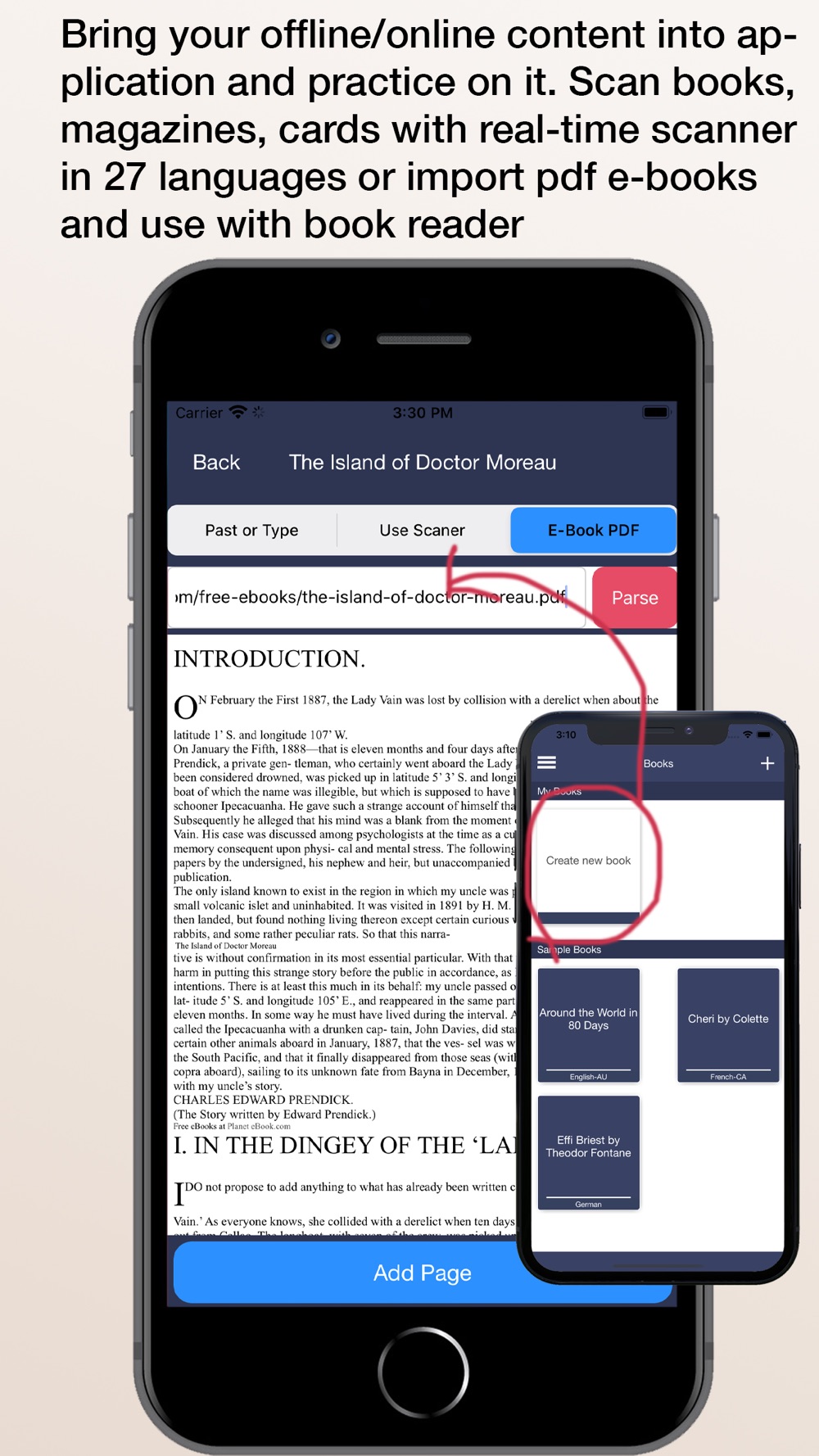 * Bring your offline/online content into application and practice on it. Scan books, magazines, cards with real-time scanner in 27 languages or import pdf e-books and use with book reader