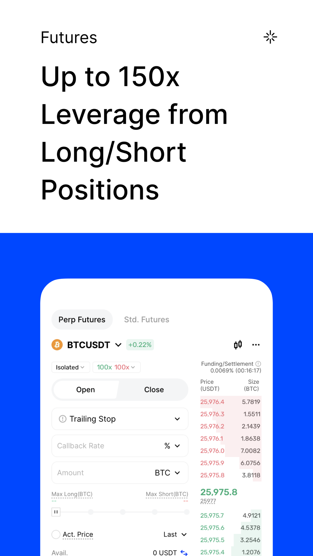 Spot Trading: Fast transactions of BTC, ETH, XRP and many other popular assets available;