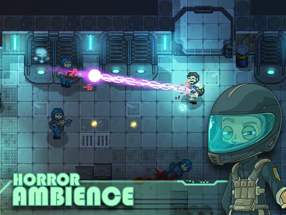In this pixel game, you’ll be surrounded by your space team liveable and talkative characters, which going to break a bit of this horror ambience to relax you and prepare for the hardcore battles with your foes and show them all dumb ways to die.