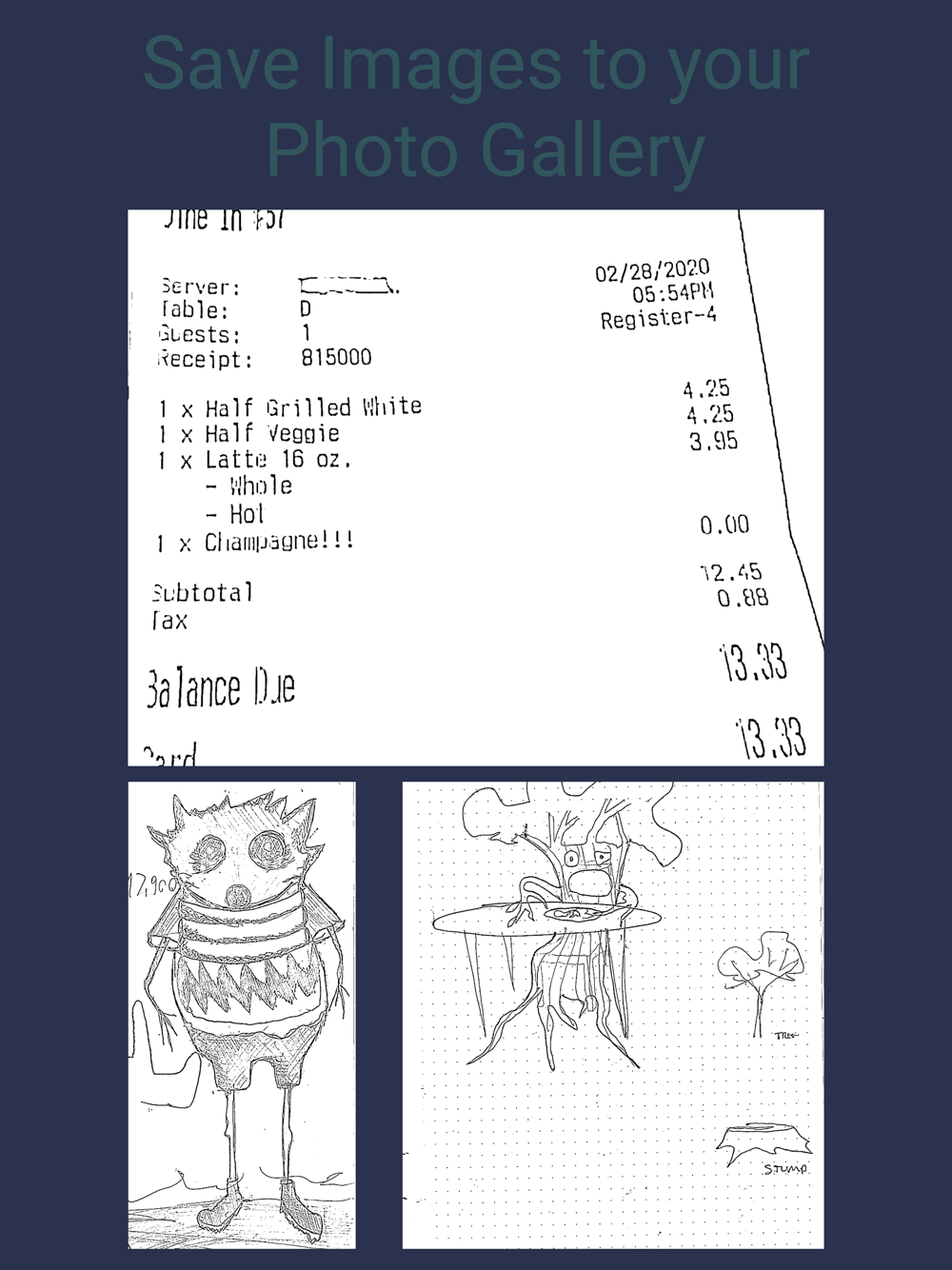 The quick and clean scanning app. No accounts or sign-in required. Download and immediately start scanning your documents. Scans are saved to your photo gallery.