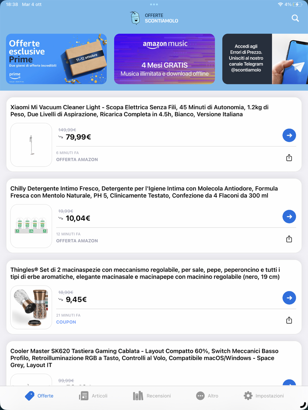 Sono centinaia le offerte che vi proporremo, ogni giorno, sempre scelte dalla nostra redazione anzichè un Bot automatico come fanno molti.