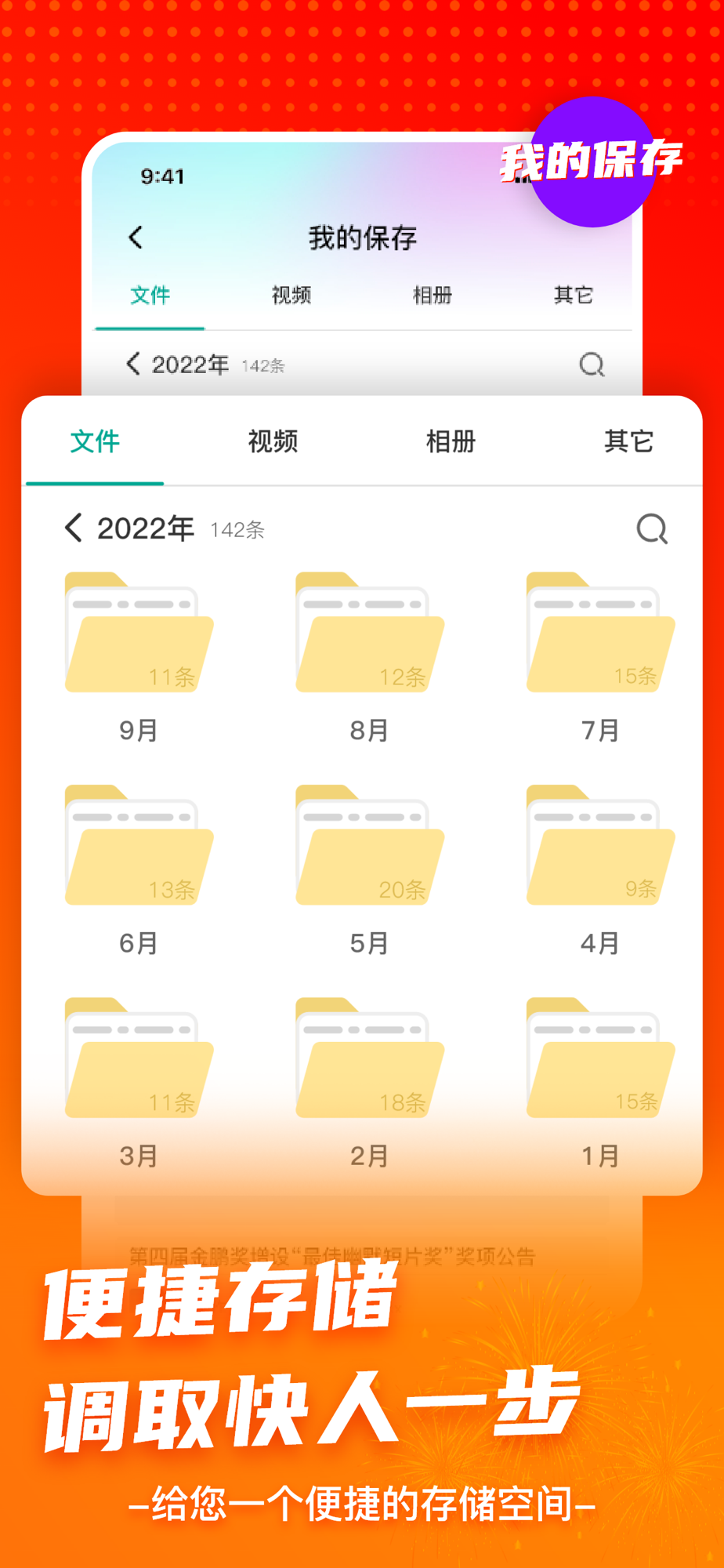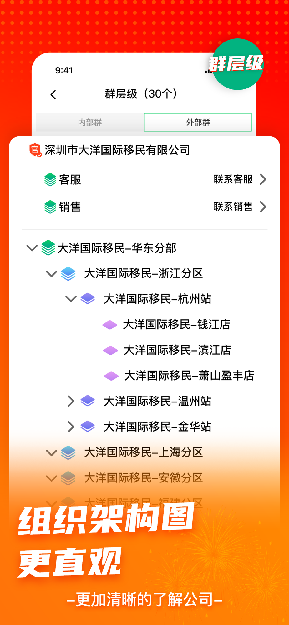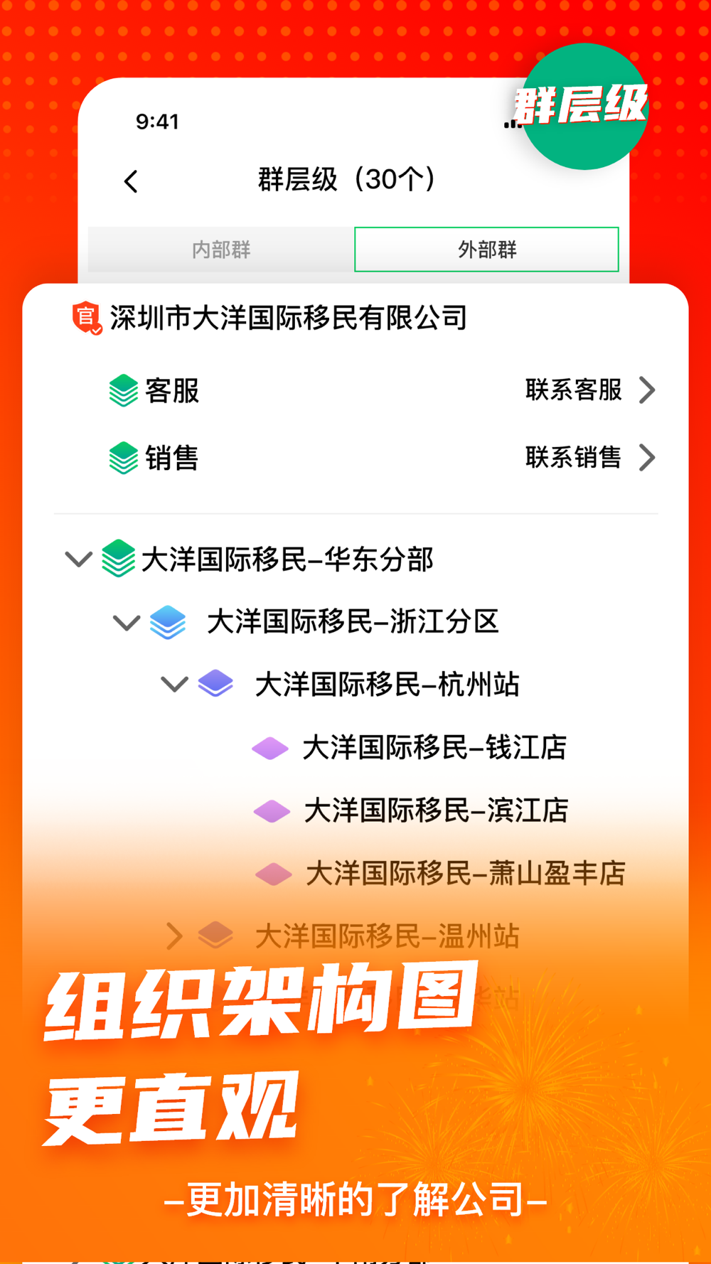 【官群】一个企业的发声窗口;发现社群可创建超万人群,有喜欢的内容可以随时参与其中;强大的群管理功能,全新体验升级的群层级、群中群等丰富的群功能。打造您的专属私域流量池;能长期保存你的视频,相片等资料文件,方便随时调取使用。再也不用担心手机丢失的数据损失。