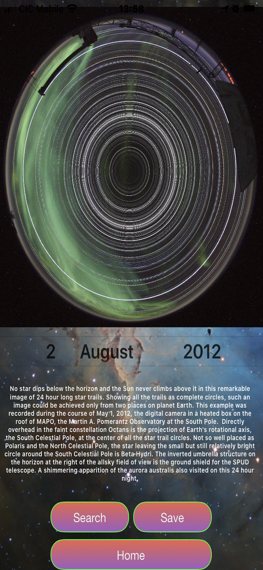 Major data services fix for APod Satellite astronomy photos and description.Improved access speed to APod Satellite astronomy data.