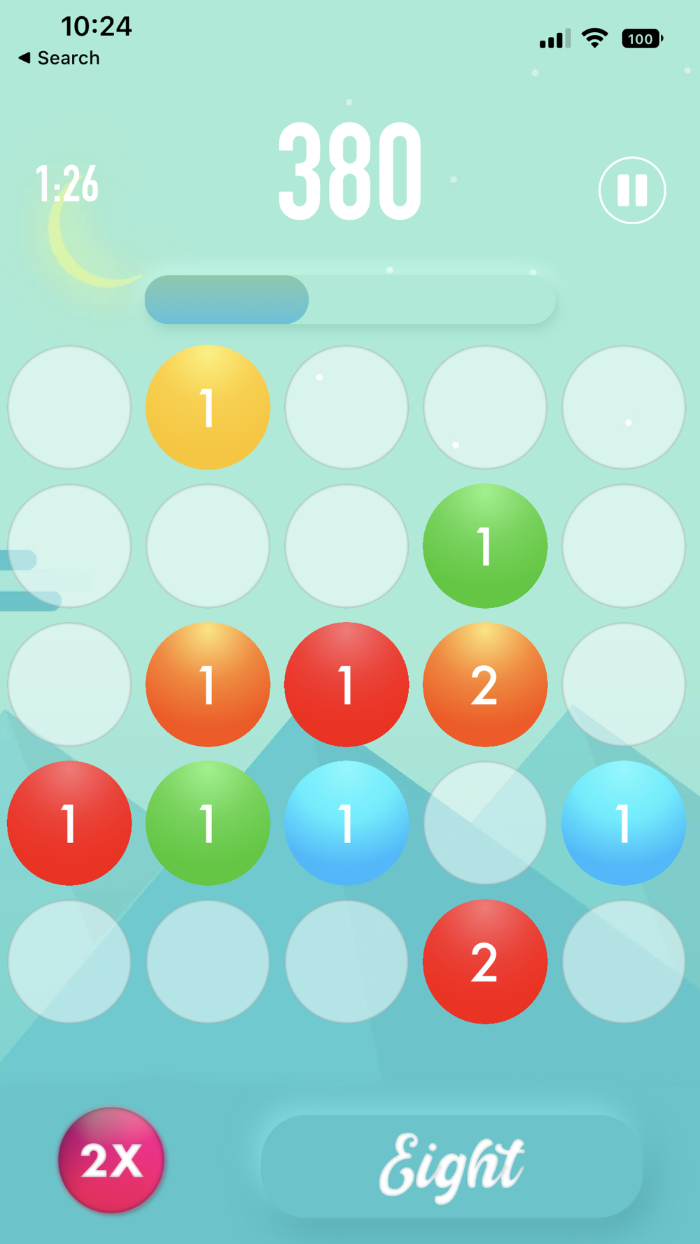 Match the dots with the correct colors and numbers to add them up and clear your board. Once a dot equals 8 (Collect8), smash the "EIGHT!" button to remove it off your board and collect 1000 points! Be careful not to let your board get filled up or you'll start losing points. The player with the most points at the end wins the tournament!