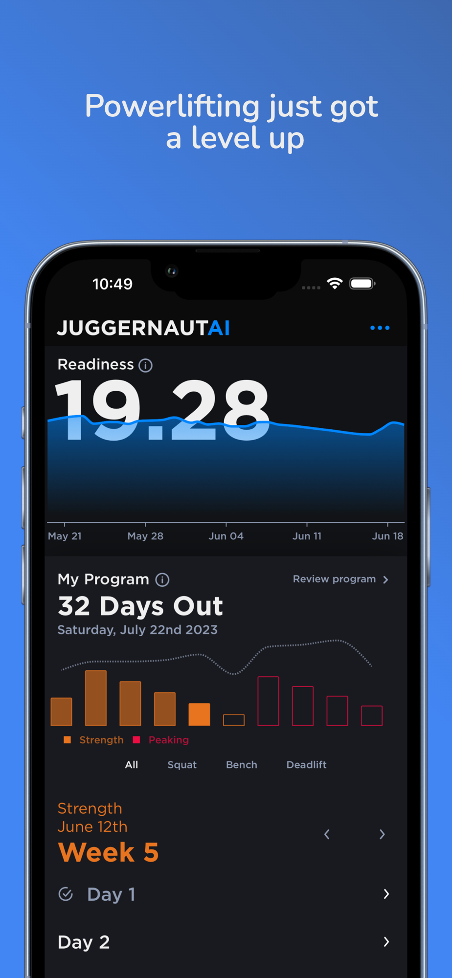 JuggernautAI finds the best way to progress to ensure you maximize your training while also managing fatigue through a strategic phasic periodization plan.