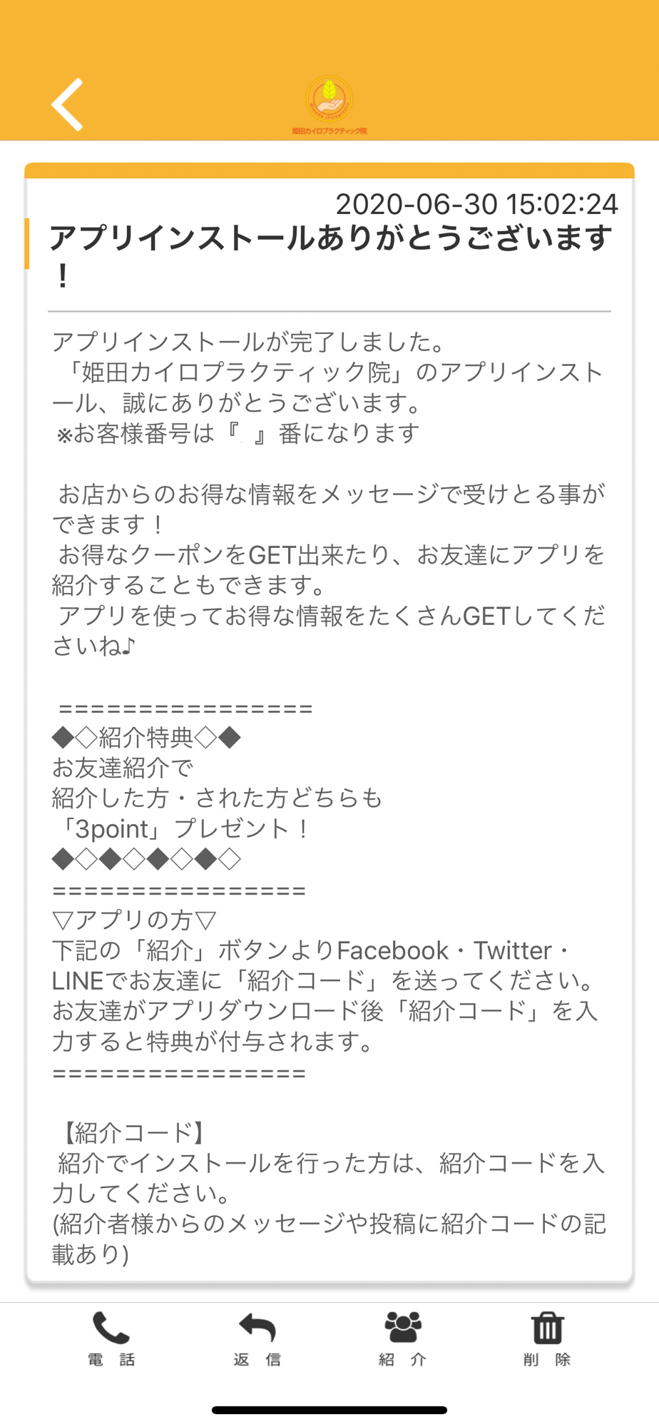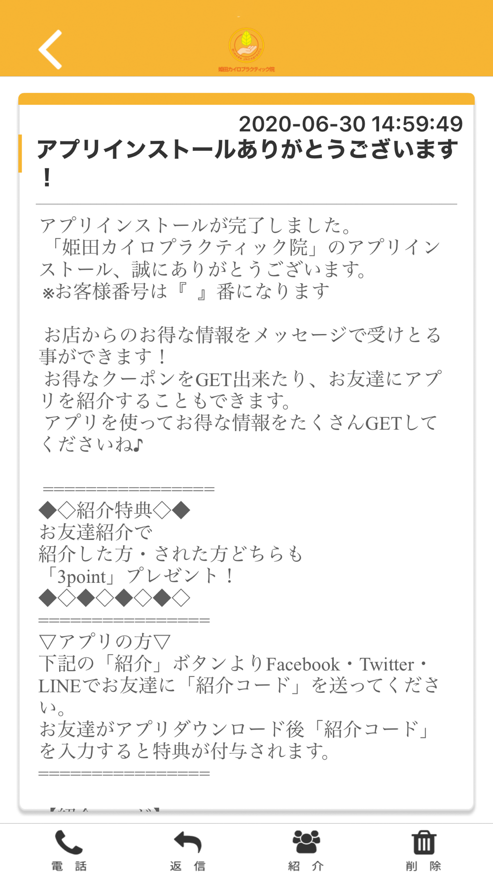 姫田カイロ院のアプリをSNSを通じてお友達に紹介する事ができます。