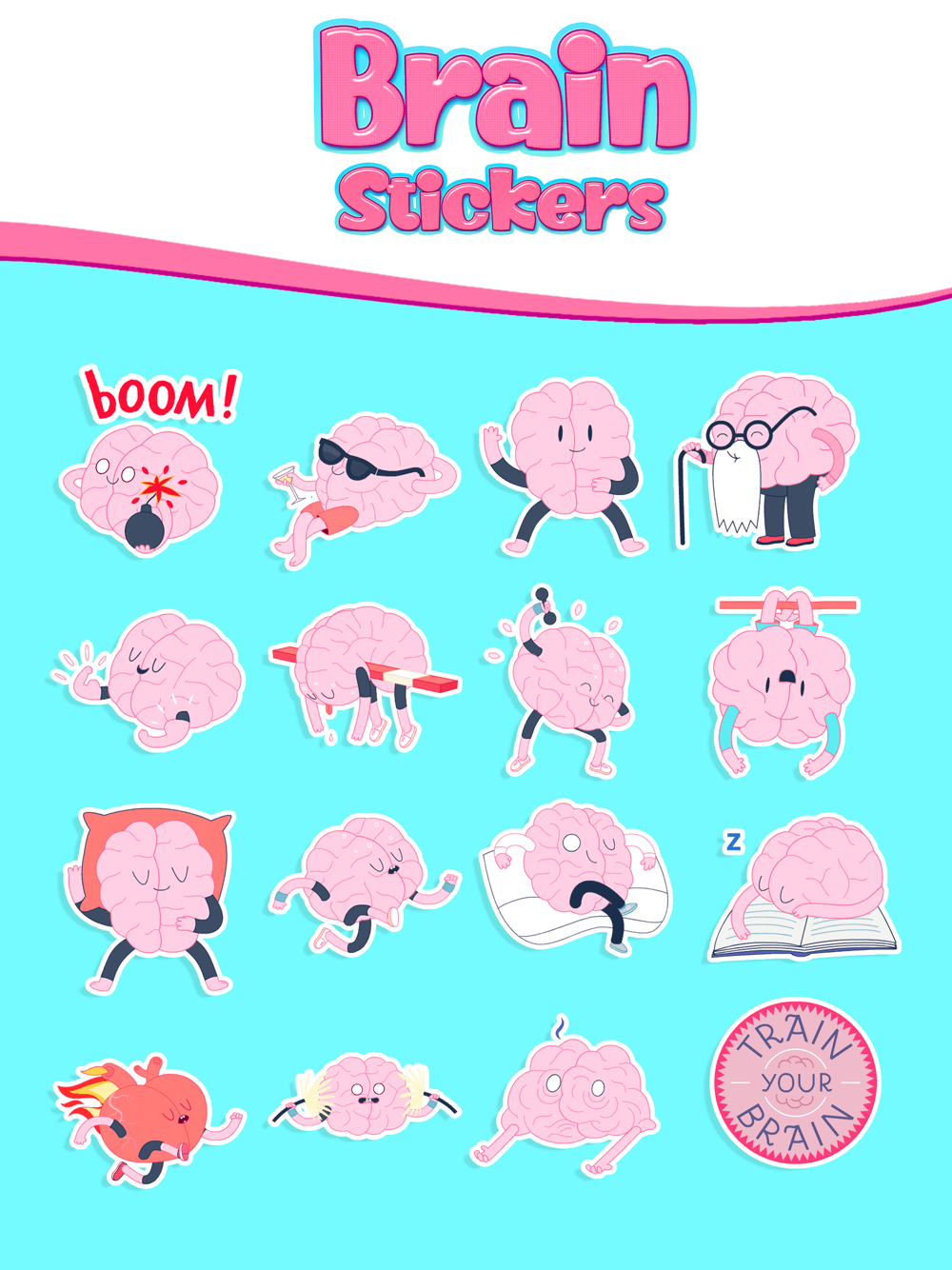 There is a wide variety of Brain Training Emojis Stickers can choose from this app. Peel and stick them over other conversation bubbles, images, photos, even on other stickers.