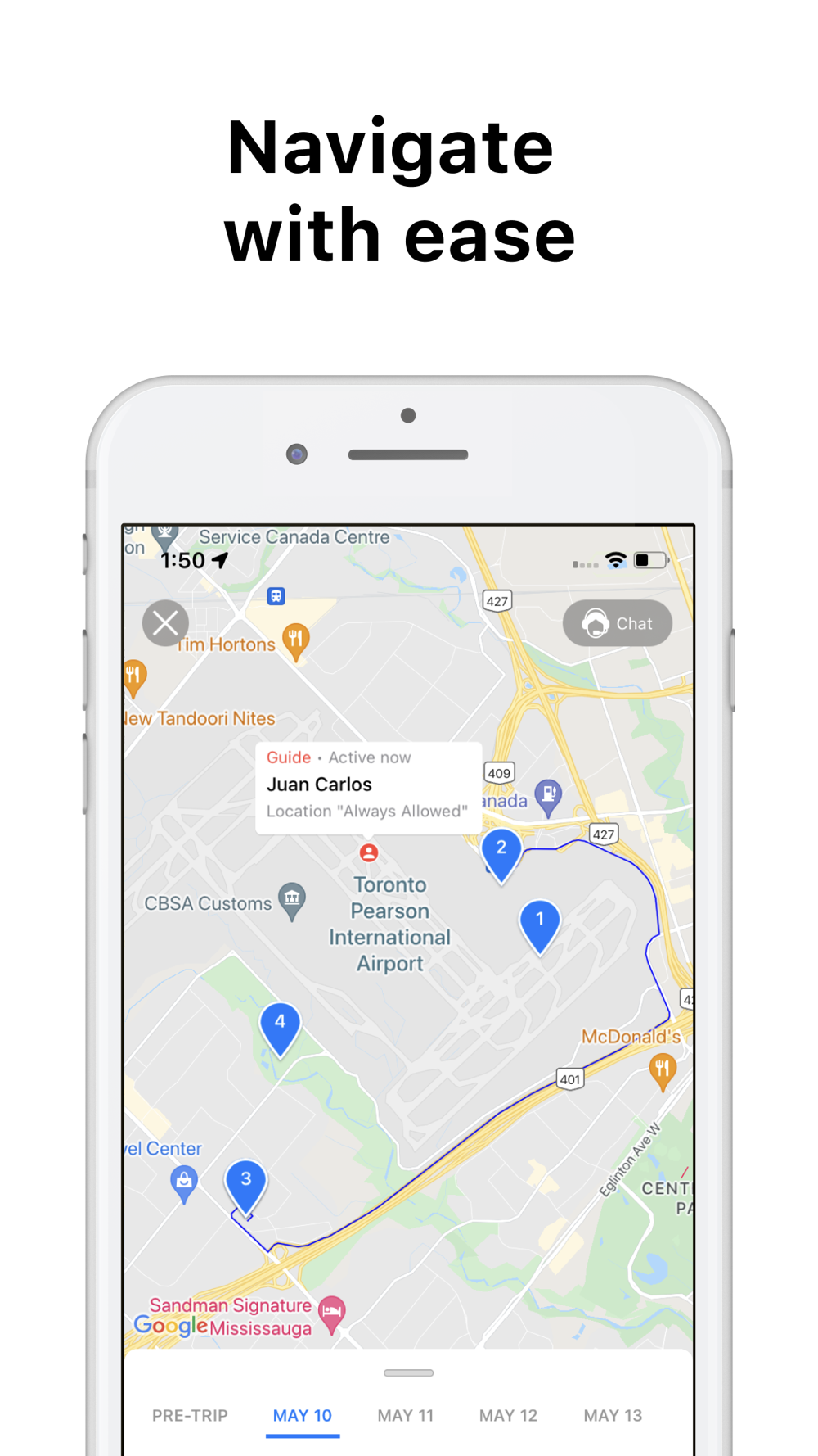 » Tap to chat with your trip leader.