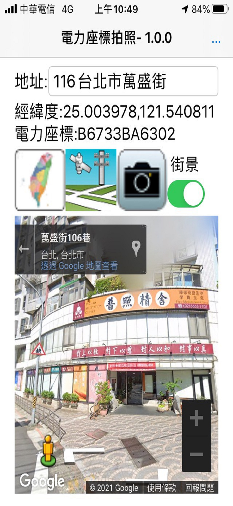 可為此電力座標位置拍照做紀錄,照片檔名=電力座標。