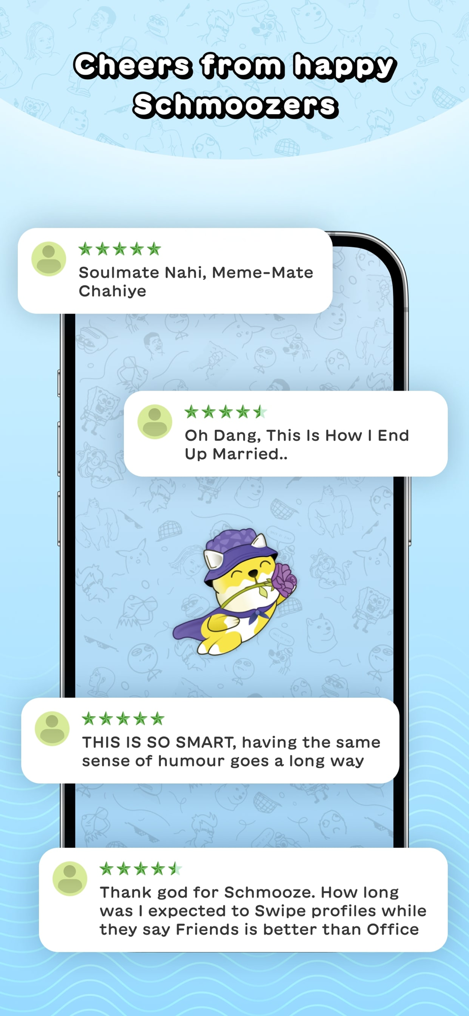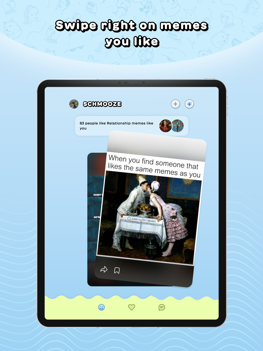 Schmooze is the world's first ever meme-based dating app that connects you with like-minded souls with shared tastes in memes.