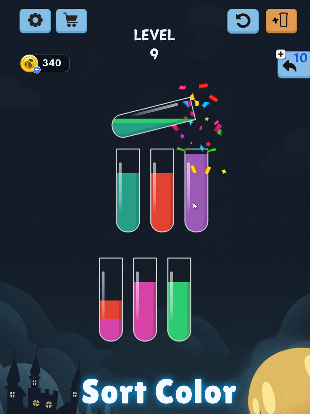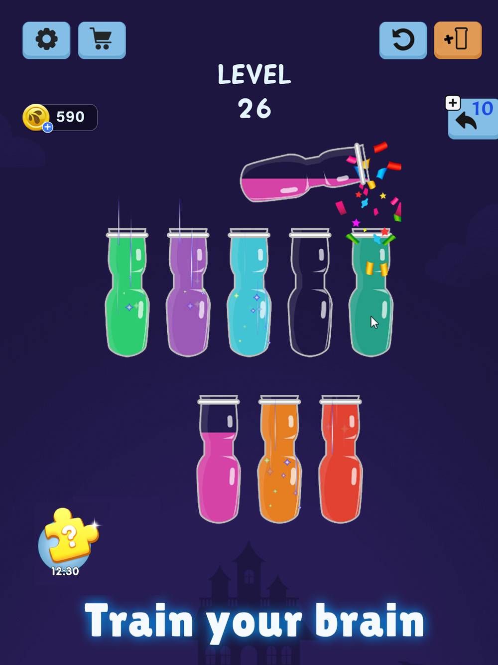 - Your next task is to sort the colored water in the cup until all the colors in the glass are the same. The game is easy to get used to, but it is difficult to become an expert and there are 1000 puzzles to challenge you.