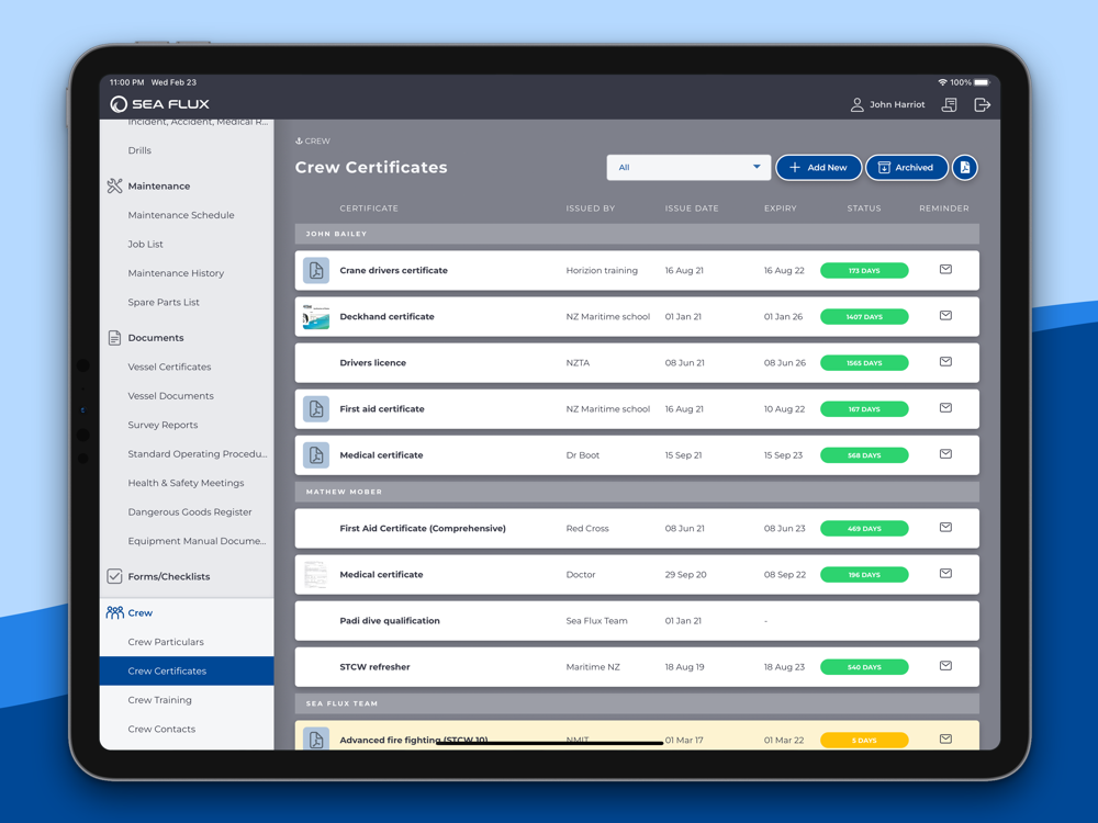 Sea Flux is an integrated package, focused on the safety and well being of your crew and vessels.