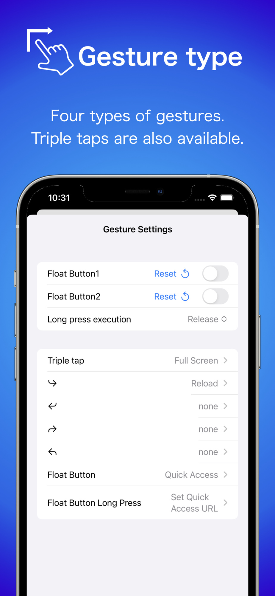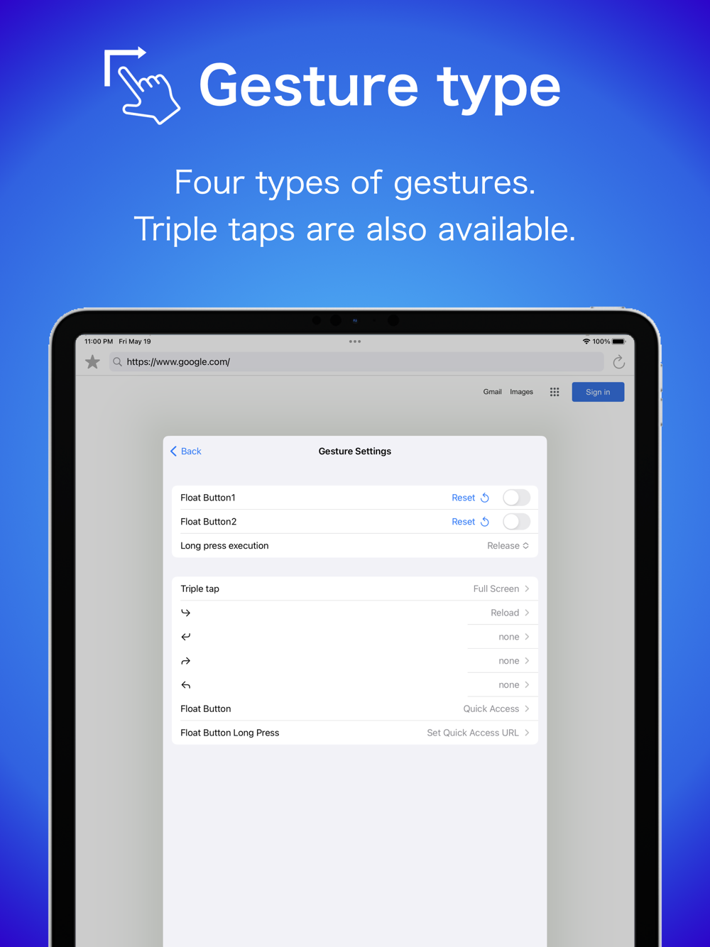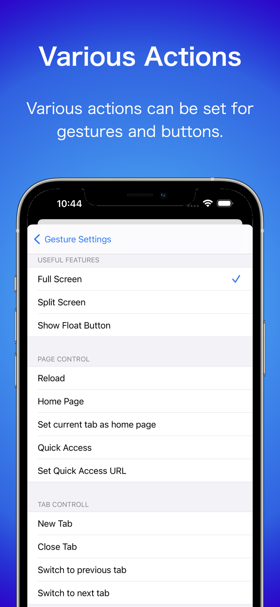 Various actions such as screen split, full screen, reload, etc. can be set.