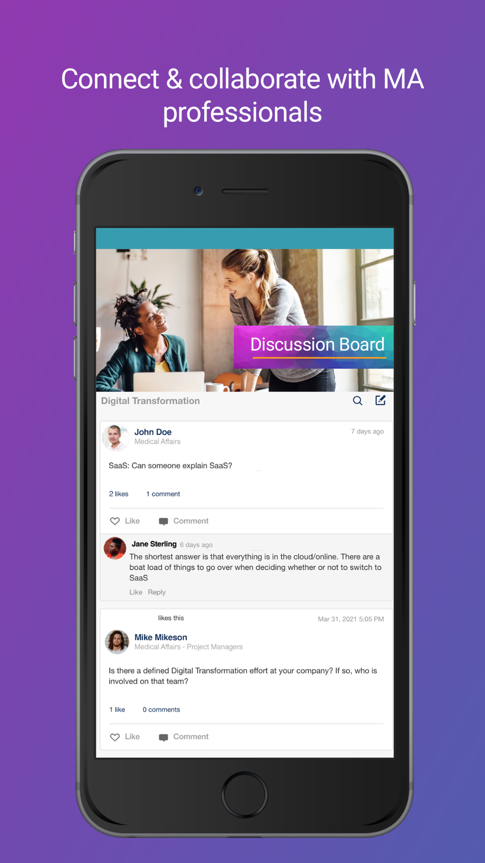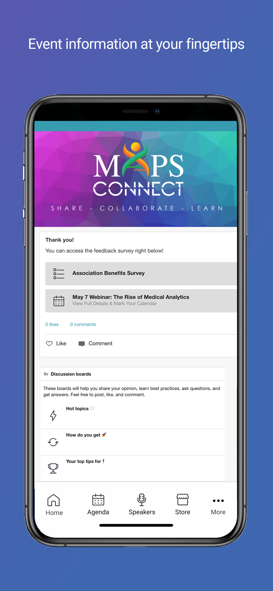 MAPS Connect is the central hub for Medical Affairs collaborations and networking. MAPS members can interact with other MA professionals across the globe, exchange ideas, experience and best practices. MAPS event participants, whether members or not, also gain access to pre and post-event workspaces and opportunities to connect with peers. MAPS Chapters have their own dedicated workspaces for member discussions and collaboration opportunities. The benefits are endless, so download and get started with MAPS Connect today!