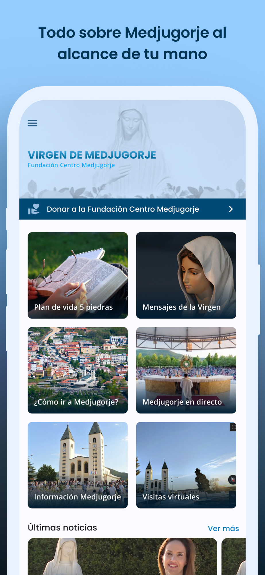 La Fundación Centro Medjugorje te acerca a los mensajes y gracias de la Virgen de Medjugorje. Como centro oficial para los países de habla hispana, nuestra misión es acompañarte en el camino de la fe y la conversión a través de las enseñanzas marianas.