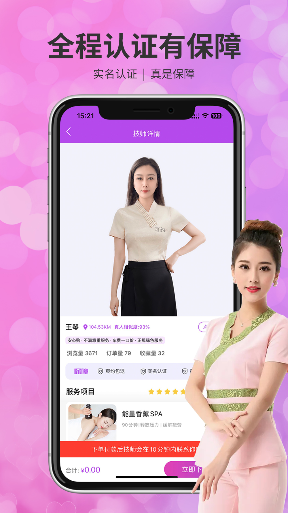 “可约”基于城市与用户定位,为您推荐附近的优质技师,最快二十分钟上门为您服务,一切以用户为中心,真诚地为每一位用户营造完美的私人尊享按摩服务!无论您是居家,还是差旅出行,我们都是您缓解疲乏的贴心助手!注:GPS在后台持续运行会影响电池续航时间。