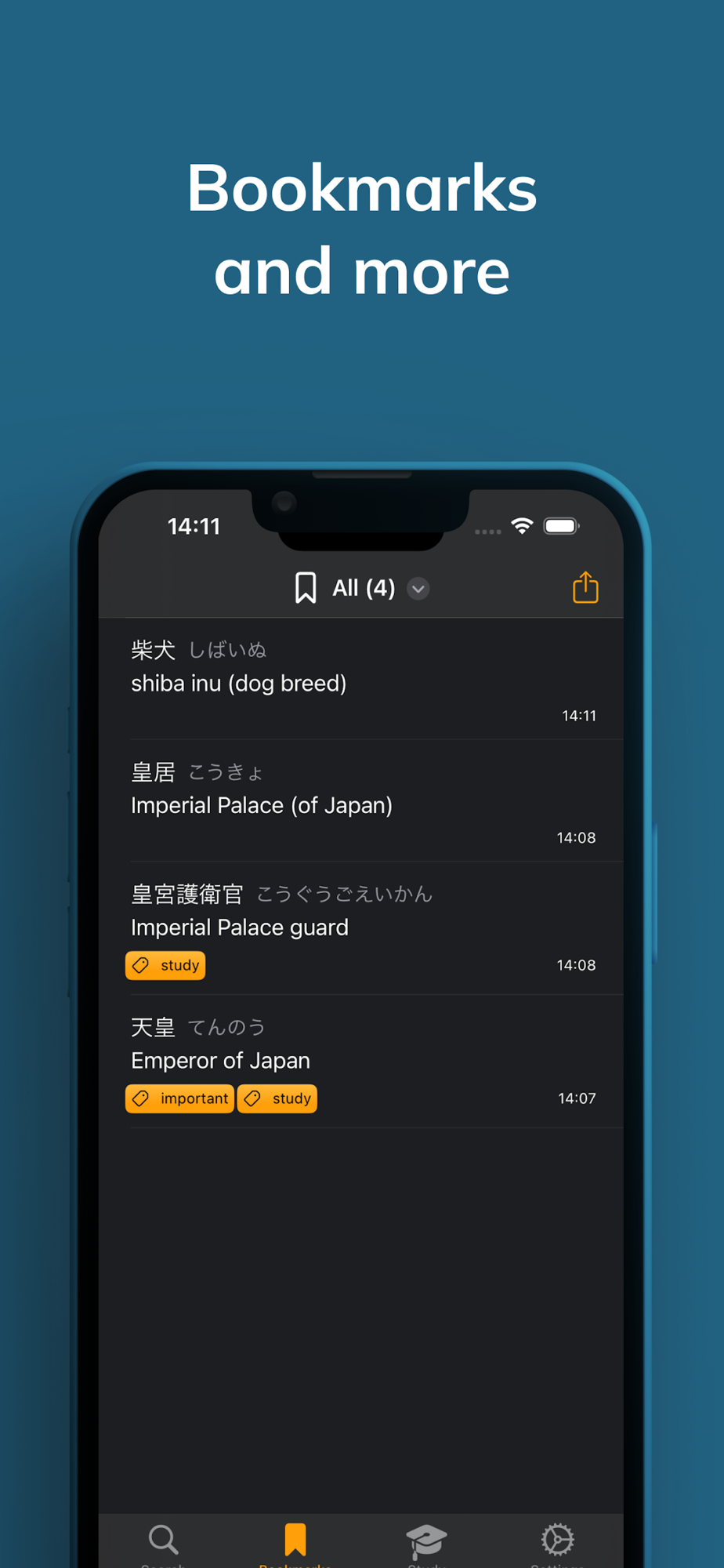 Offline Japanese dictionaries for words, kanji, and example sentences.