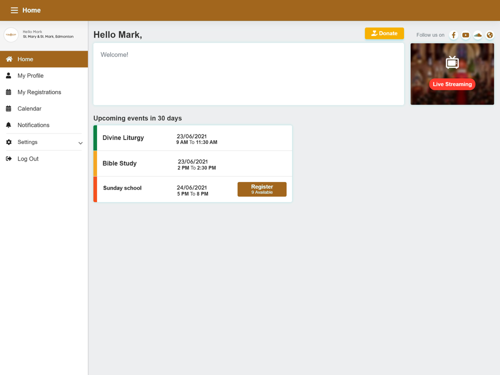 - Members will be able to book various church events (liturgies, vespers, meetings, special events, ...etc) for themselves as well as their family members.