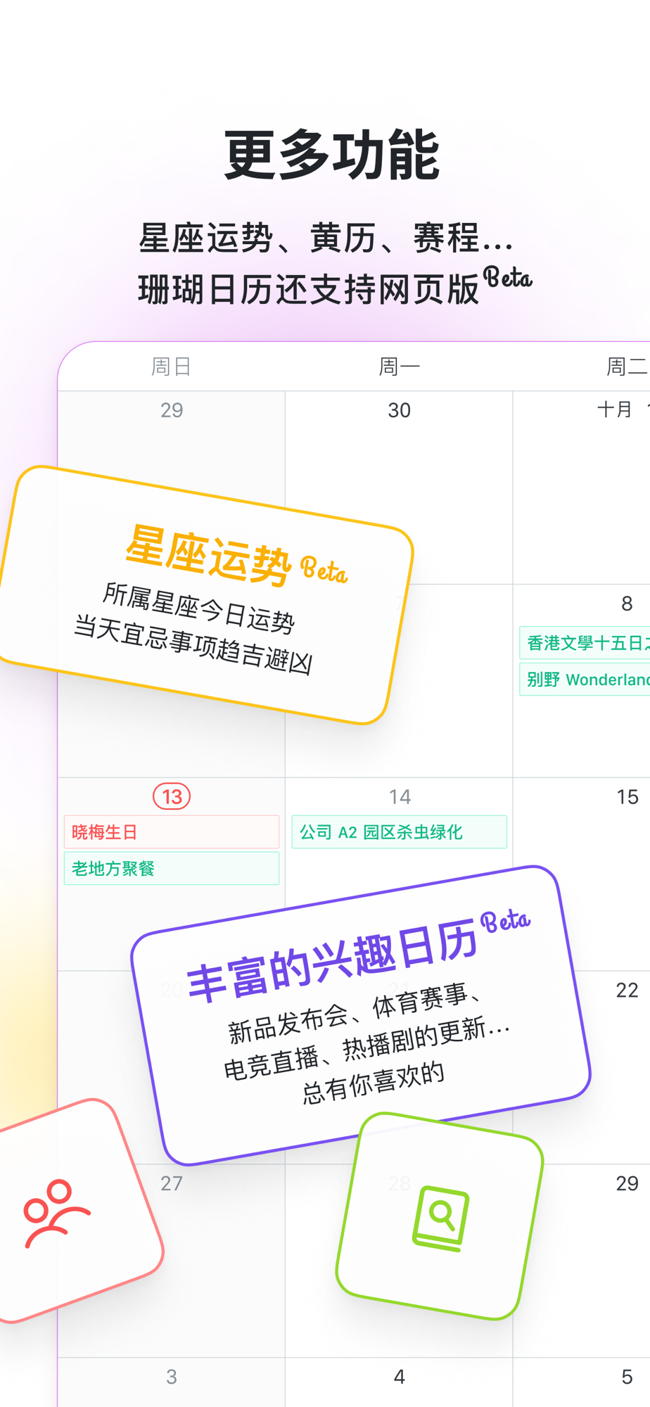 珊瑚日历由 Polytime 进化而来,全新的 icon 和设计,更好的功能和体验!