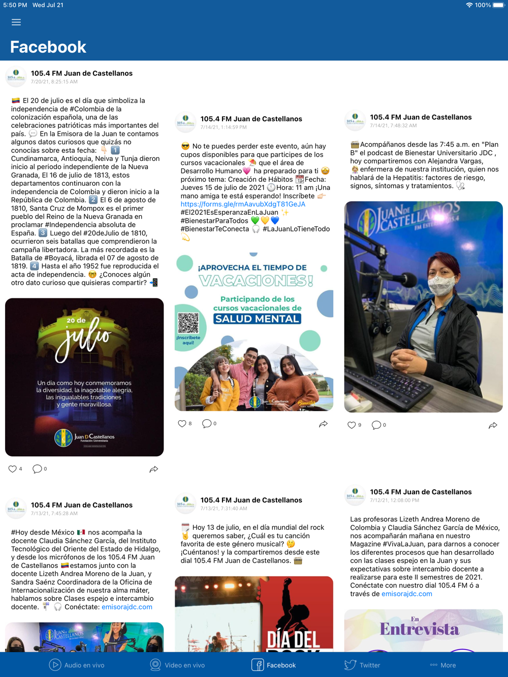 Somos la emisora de la Fundación Universitaria Juan de Castellanos. Sintonízanos por los 105.4 fm en Boyacá o en http://jdc.edu.co/emisora/