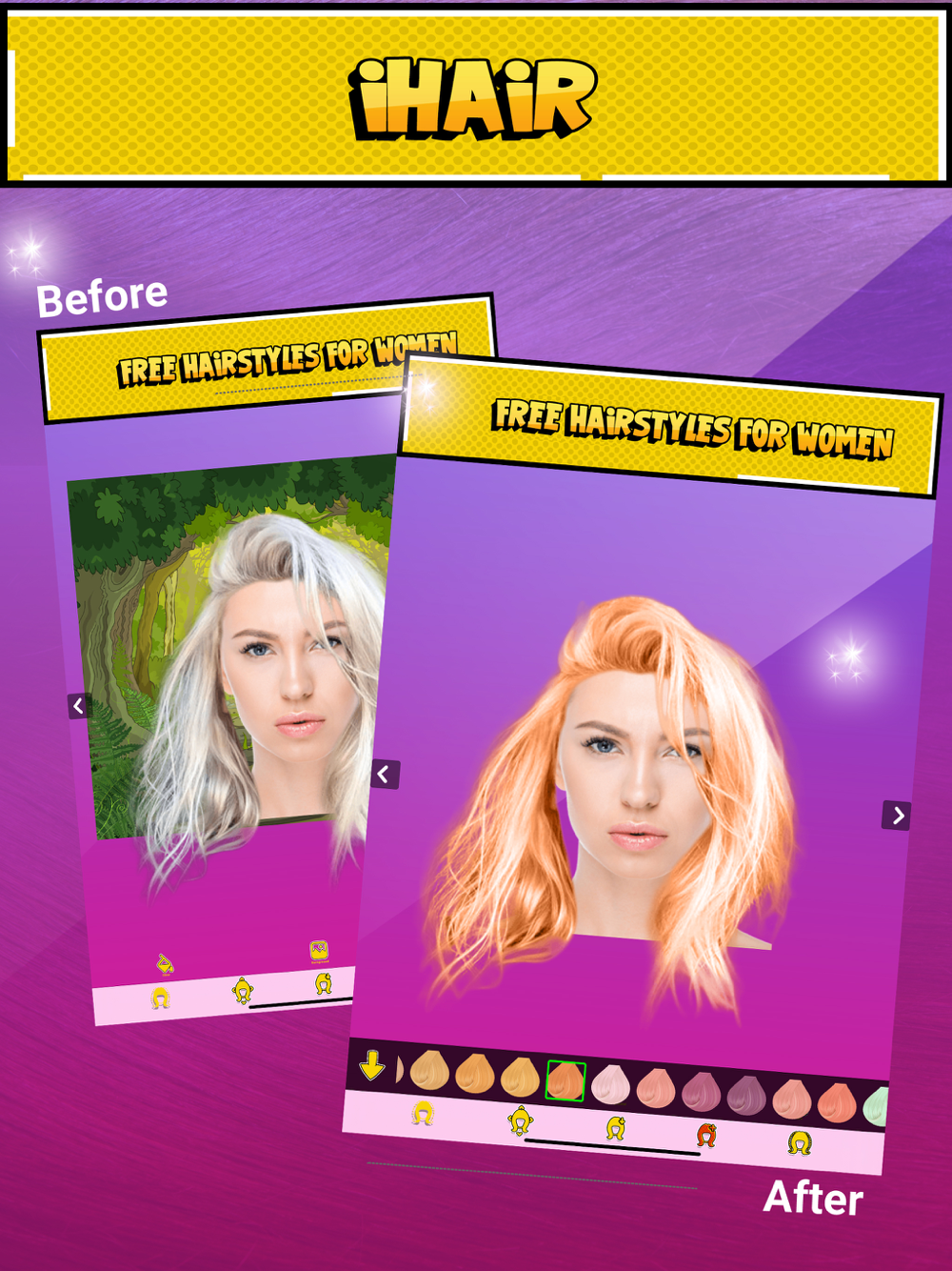 Download Hairstyles absolutely free right now with no registration and make your first amazing Woman Hairstyles selfie photo! Enjoy and shine bright with amazing woman hair styler app! Change your hairstyle and create beautiful and original hairstyle in different styles because our hair styler app is designed for any face shape.