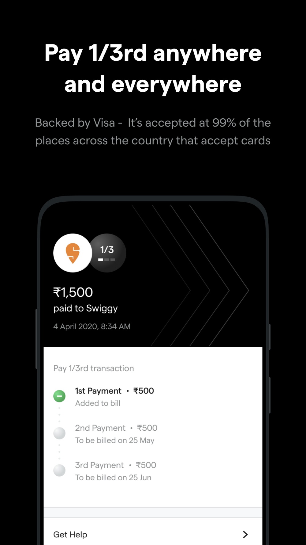 The Pay 1/3rd revolution is here. Uni Pay 1/3rd Card is exclusively made to help you pay in 3 parts for no extra charges. Backed by Visa, Uni Pay 1/3rd Card is accepted at 99% of the places across the country that accept credit/debit cards. It’s true! Now spend anywhere and everywhere with your Uni Card and just Pay 1/3rd.