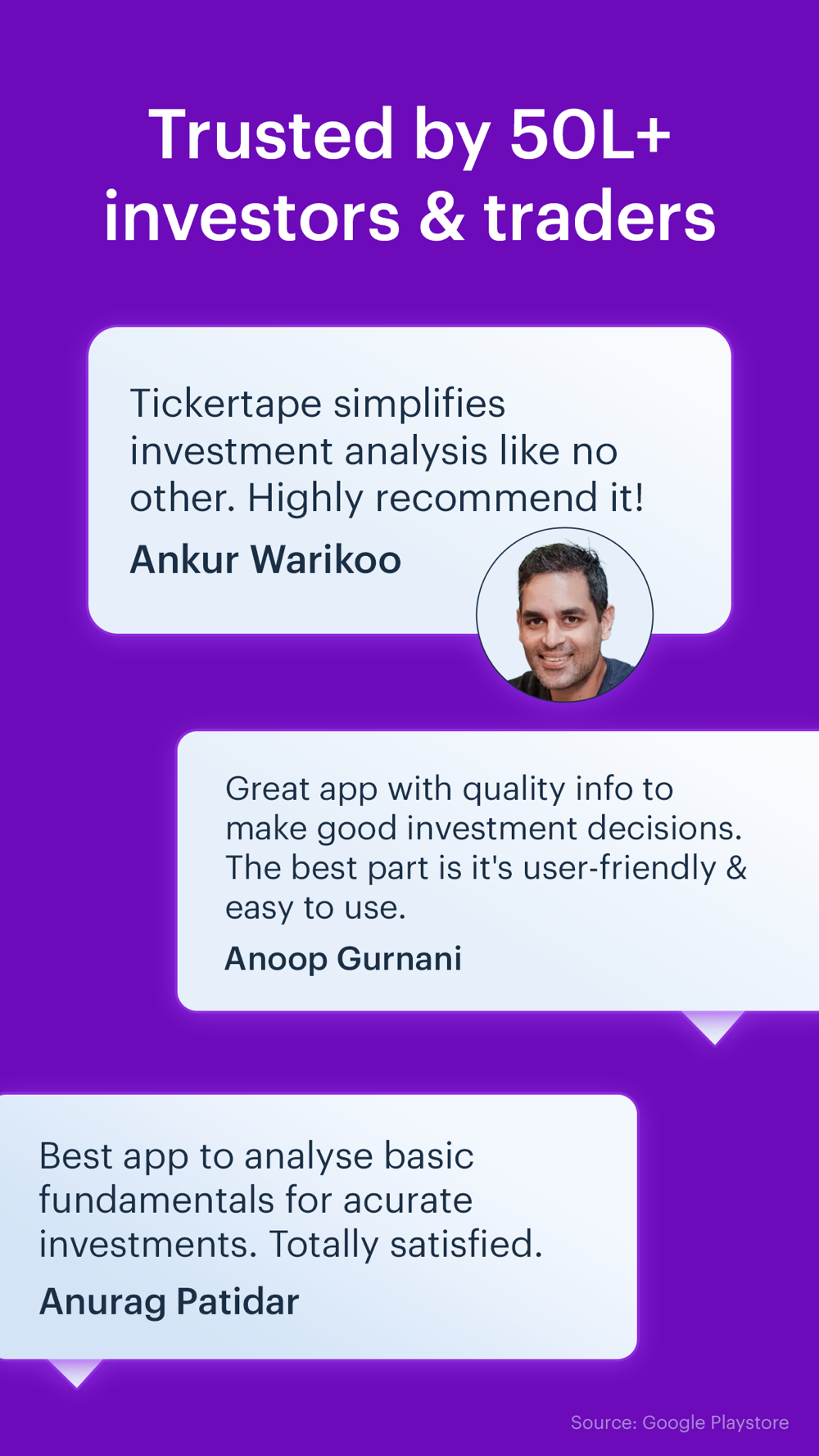 Tickertape helps investors with efficient stock research, news about stock deals and presents stock forecasts to help them make smarter trading and investing decisions. It also provides share price data, quality stock fundamental data, stock screening tools, and instant market news.