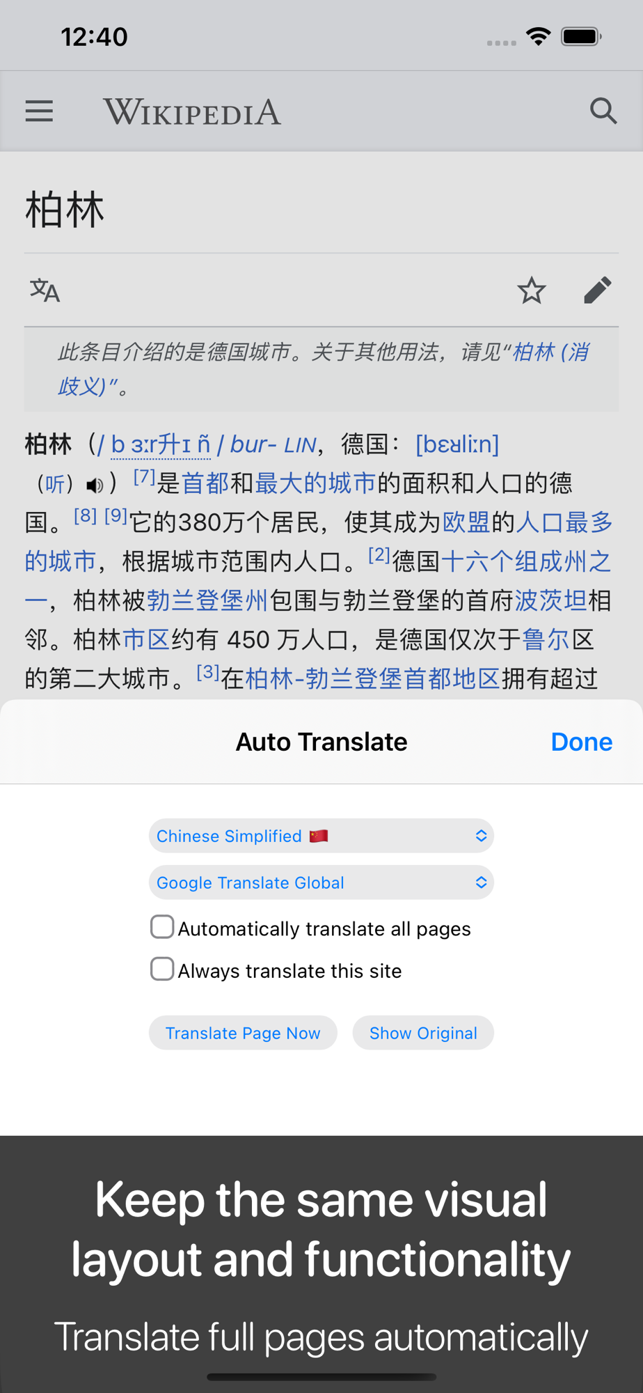Navigate the web and translate the entire page in your preferred language (automatically after page load or manually only when you want to) - that's it.