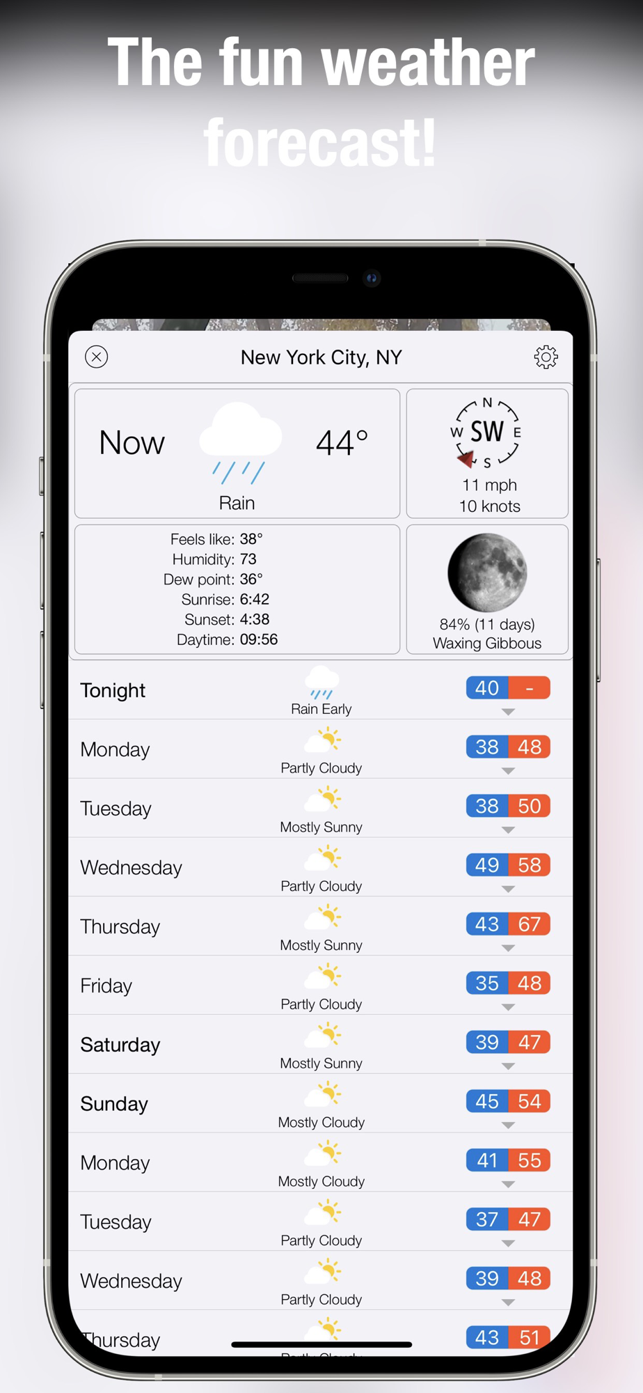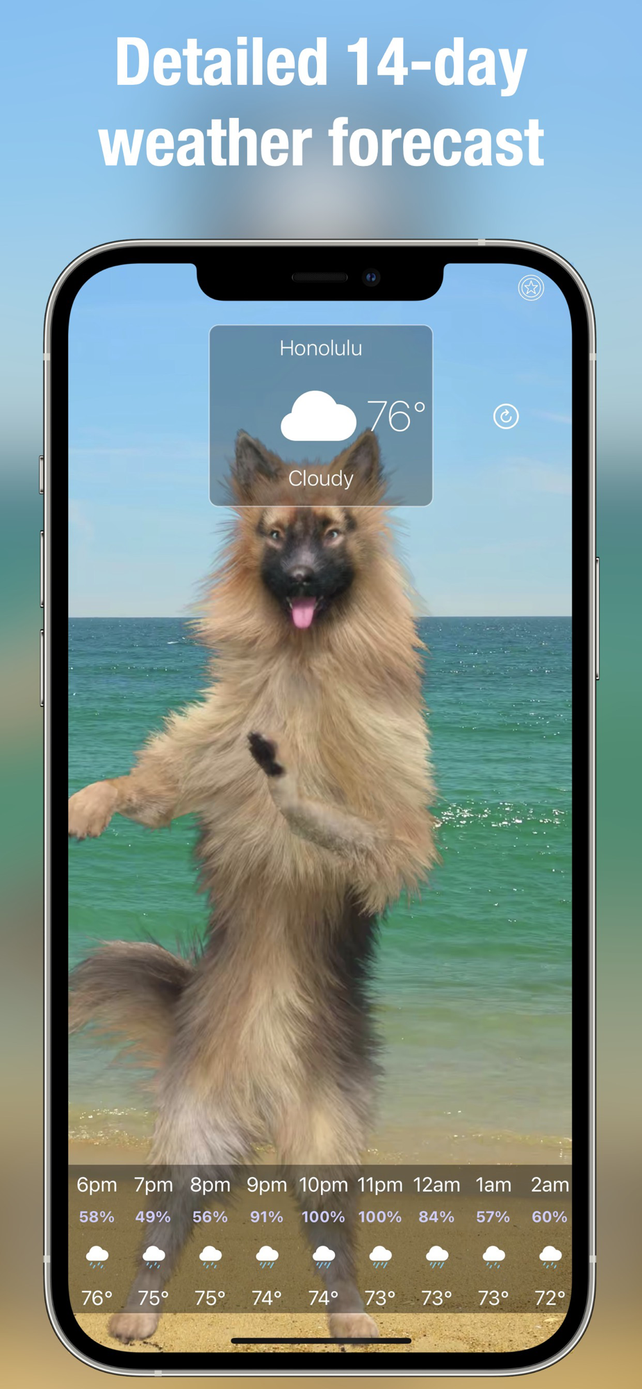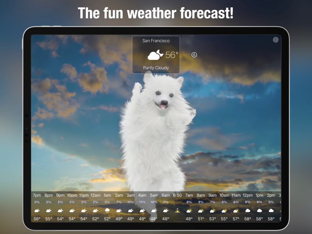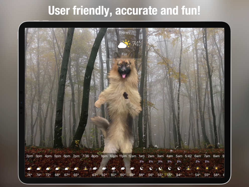 No matter what the weather forecast, your spirits will be lifted whenever you open the app. With a large selection of both hilarious dog animations dancing on your screen as well as cute dogs and puppies playing, performing cool tricks, resting and… just being dogs.