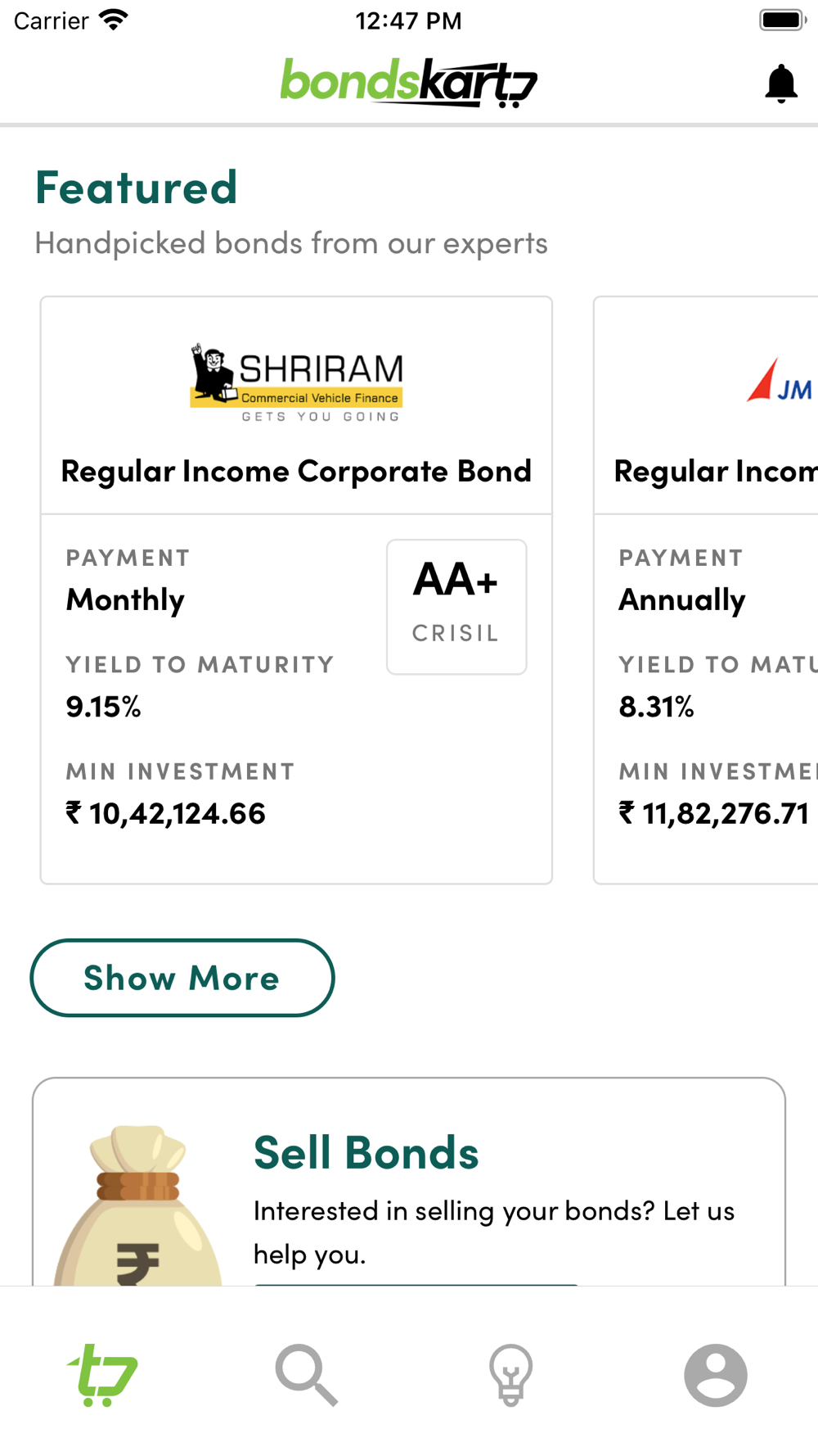 BondsKart is India’s first intuitive investment platform that brings a rich variety of premium bonds and debentures to retail investors, in a matter of just a few clicks. Our investors are offered exclusive access to our diverse portfolio that curates bonds with promising yields across large investor networks - without compromising on the ease of buying and selling. We house only top-notch securities, ranging from AA to AAA ratings, ensuring that our investors always have the edge