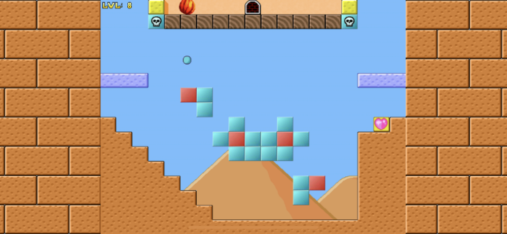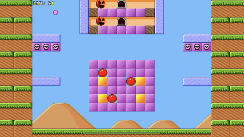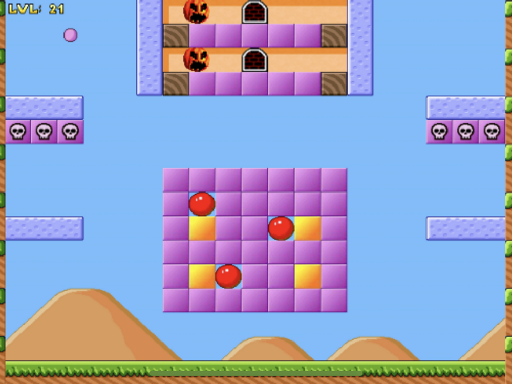 Each of the game's 30 play fields consists of a number of different colored blocks. Your goal is to remove them all by changing your ball's to the matching color.