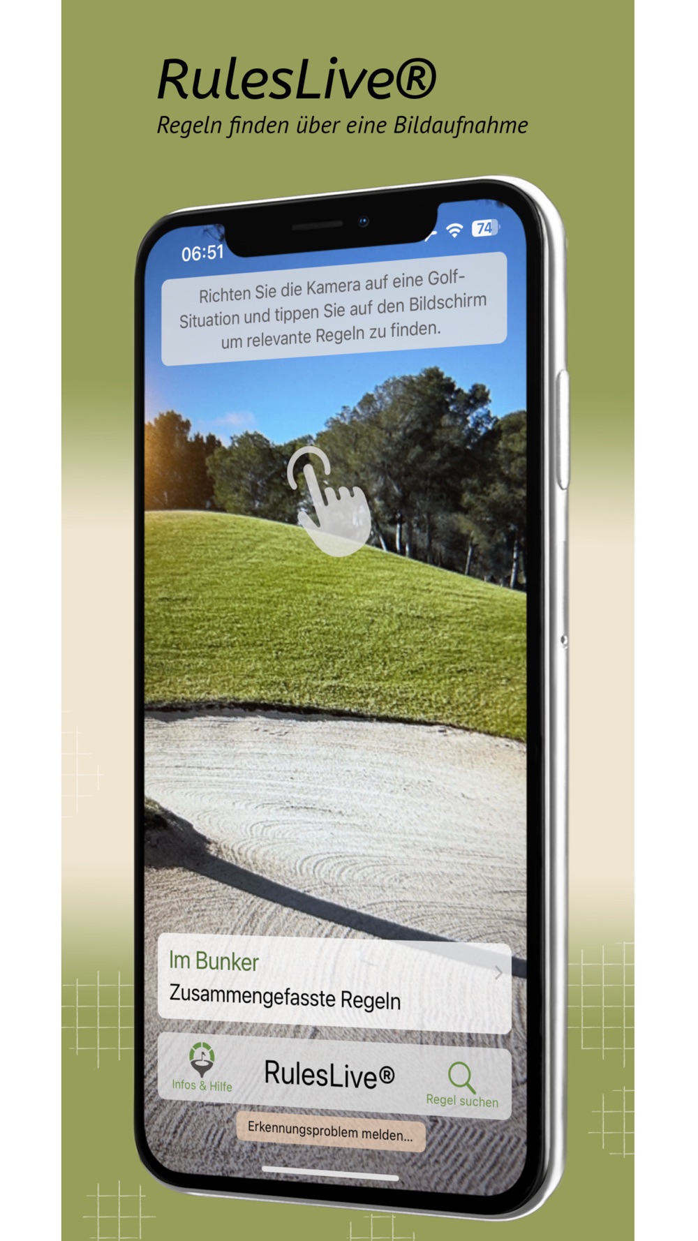 Das RulesLive-Logo® ist eine eingetragene Marke der Golfsoft AG. Unser innovatives Bilderkennungsverfahren zur Erkennung der Golfregeln ist zum Patentschutz angemeldet (patent pending).