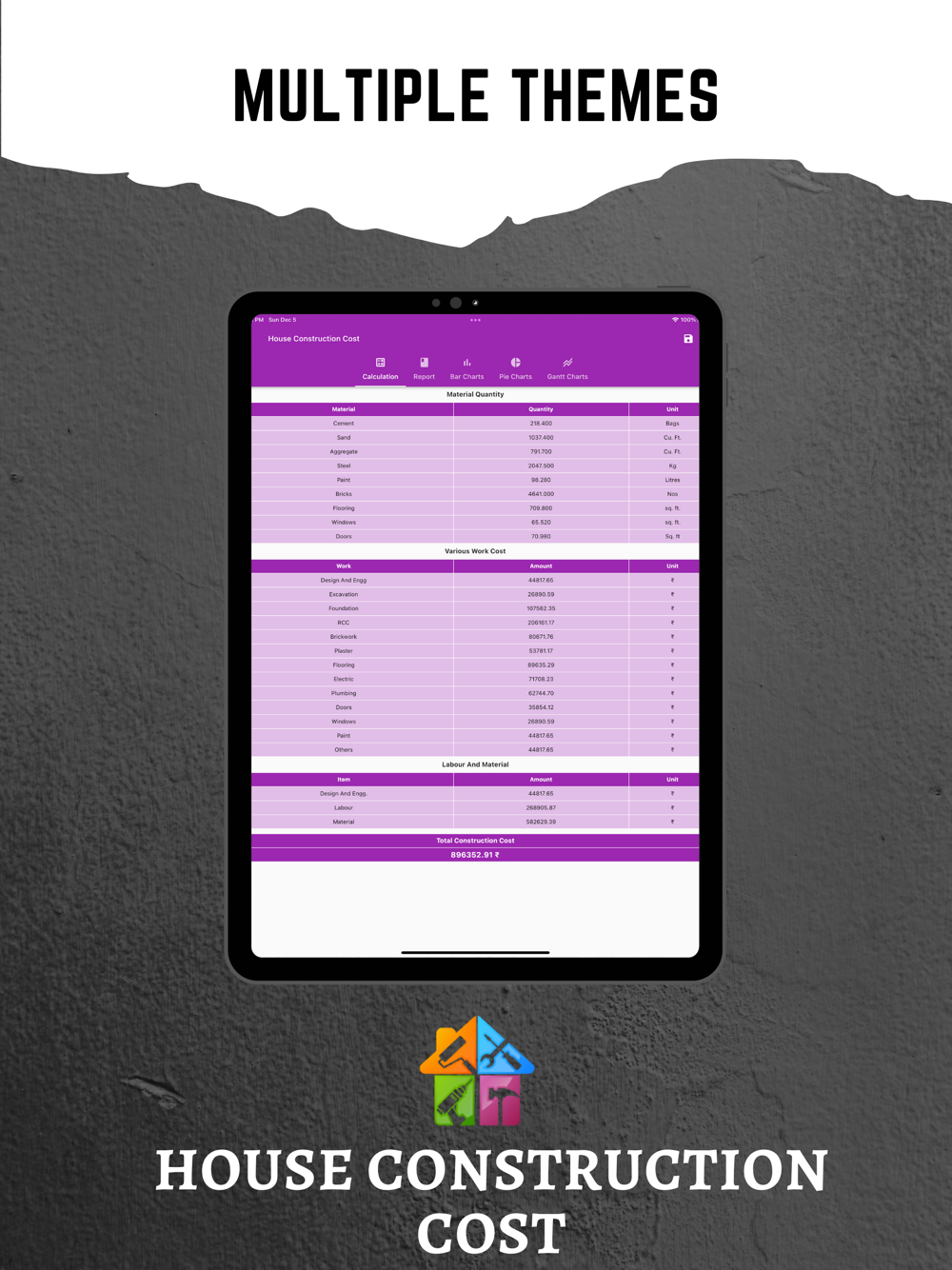 House Construction cost is a free application for construction calculations. We use simple tools in the application to simplify the calculations for house construction. Help to calculate almost all kinds of material Quantity, Various work estimation calculations.