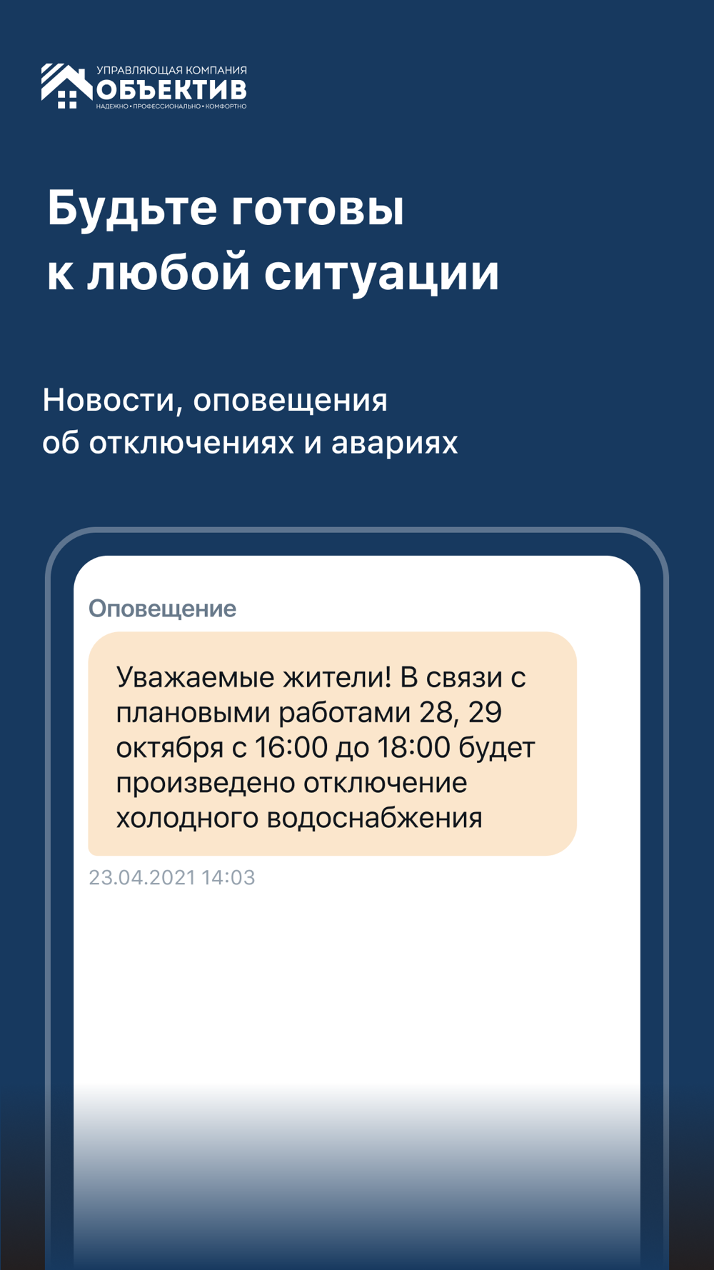 • Получать оповещения об отключениях воды, плановых работах и других важных новостях Вашего дома.