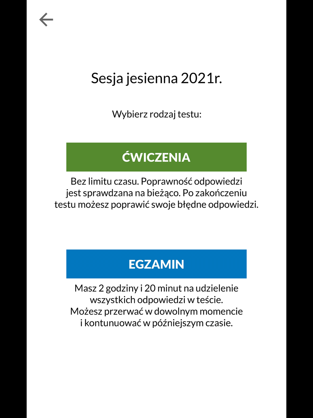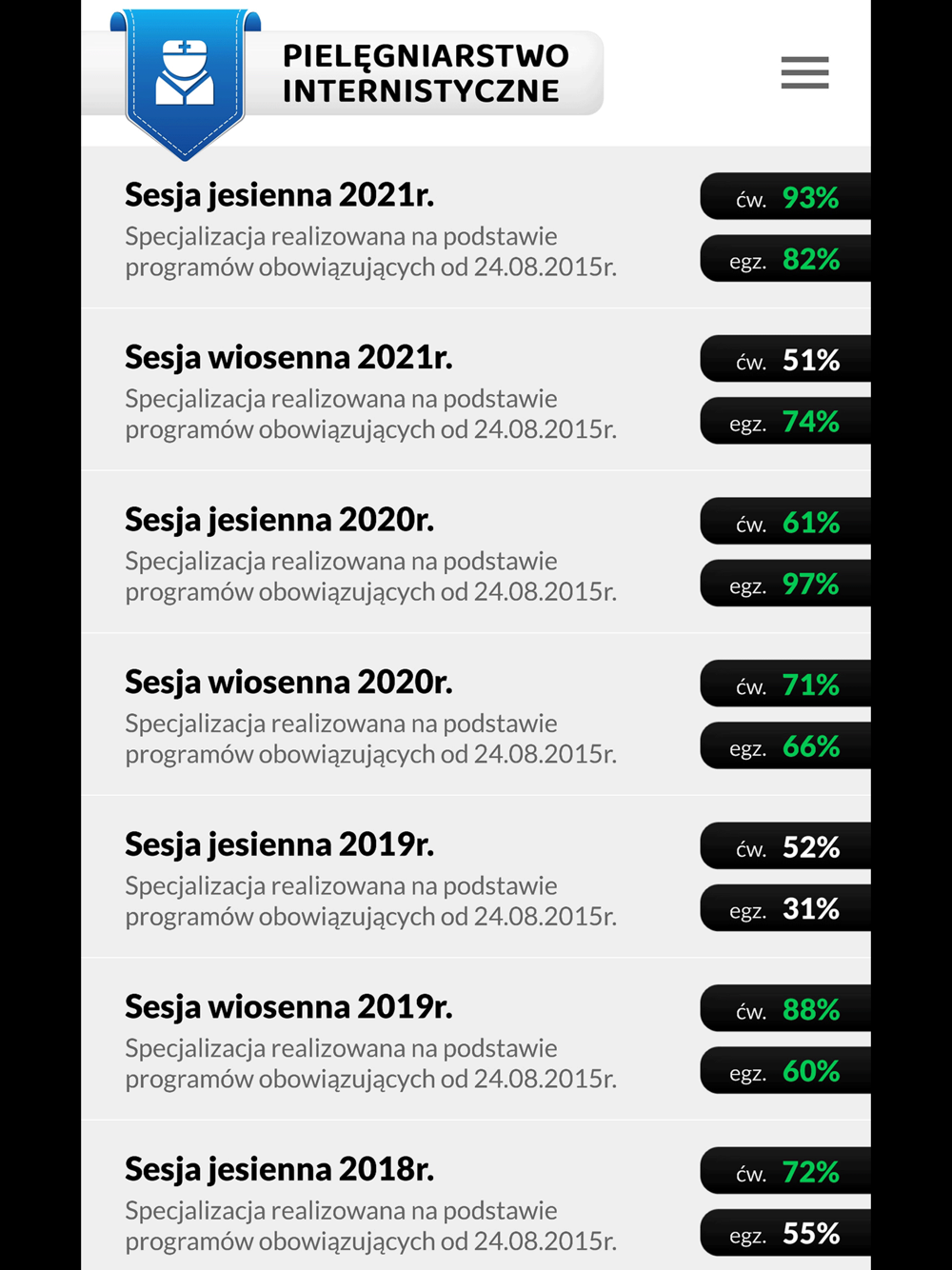 Nasza aplikacja zawiera wszystkie testy zaczynając od sesji wiosennej 2018r. (Specjalizacja realizowana na podstawie programów obowiązujących od 24.08.2015r.)