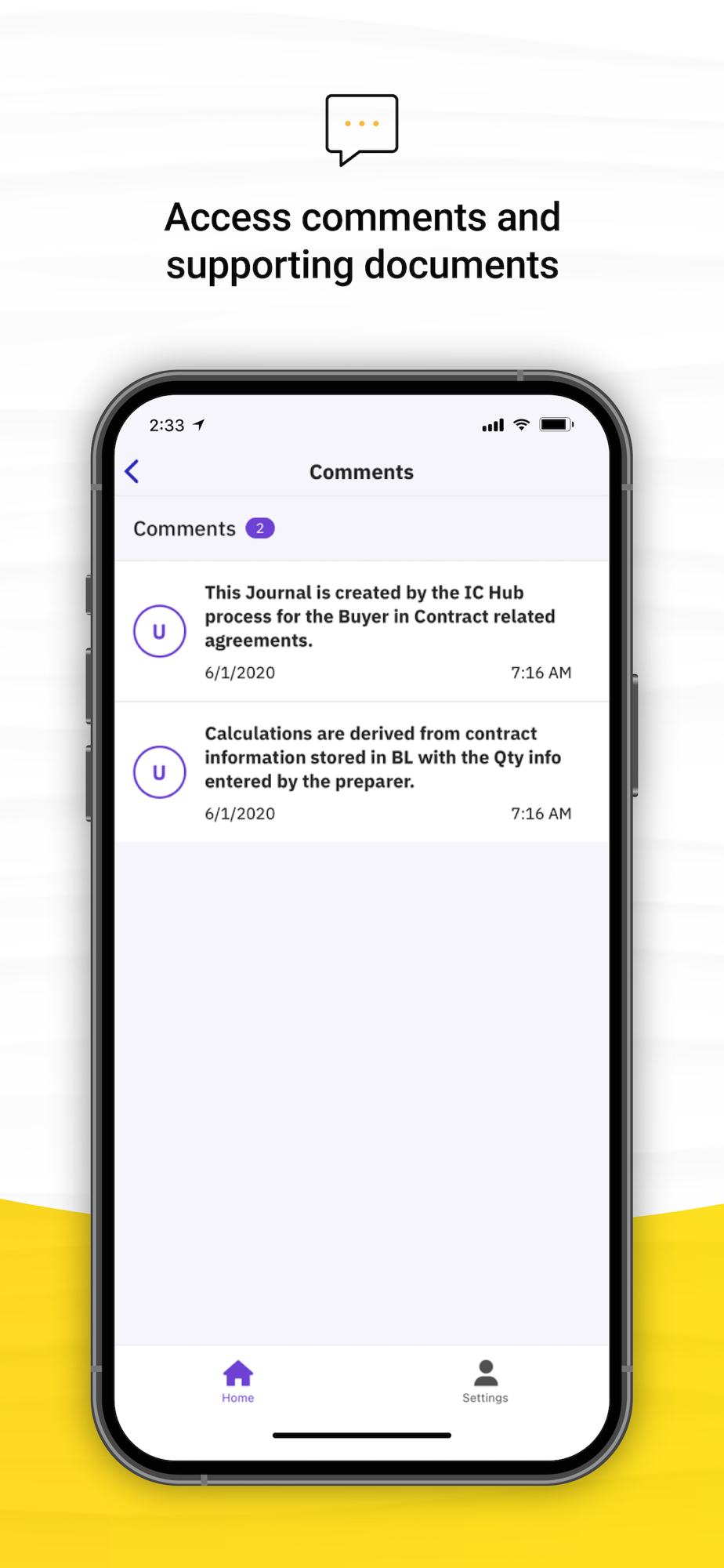 • Review relevant journal details, including headers, lines, comments, hyperlinks, and documents