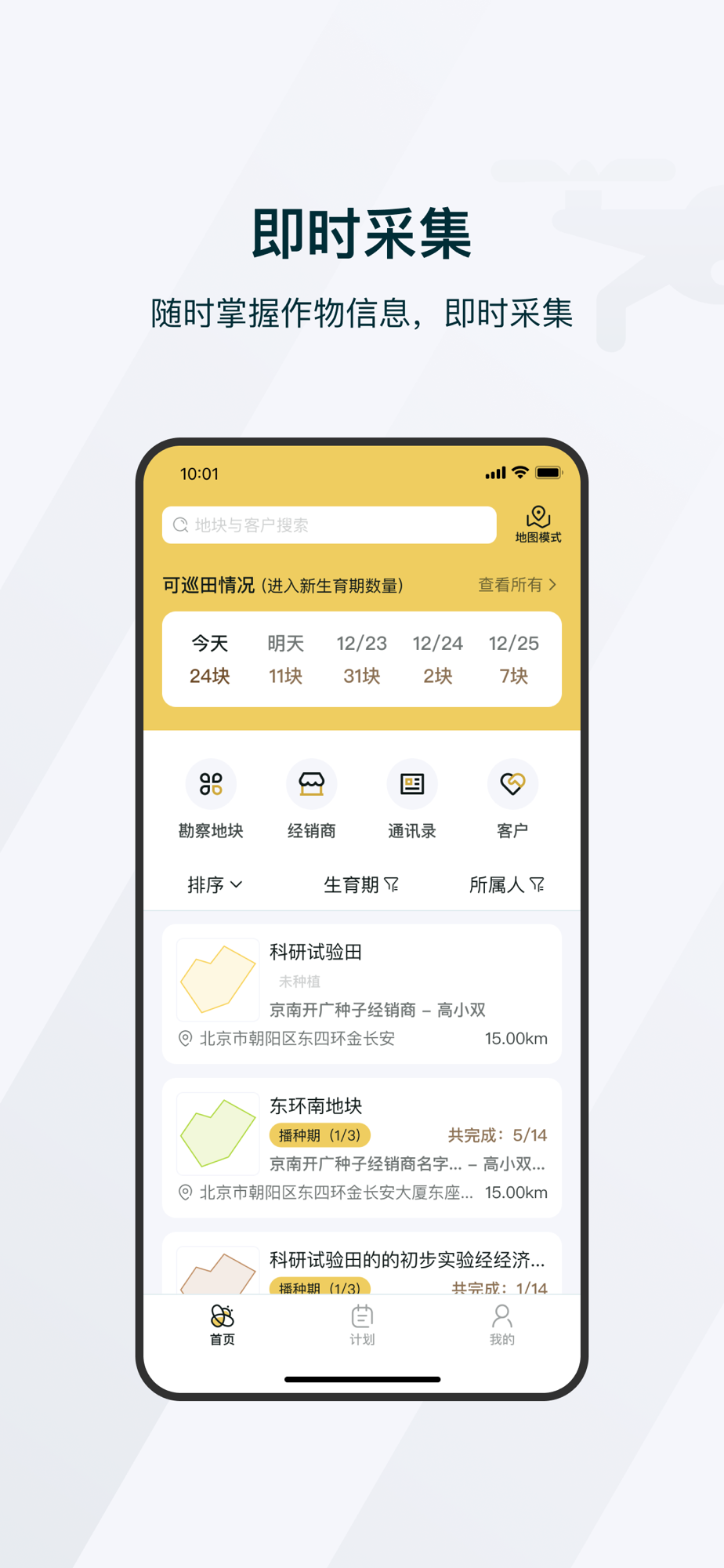 为爱耕耘用户采集作物生育时期各项数据,并给客户进行田间指导。通过让公司内部采集人员使用,为客户提供田间作物生长的数据采集服务工具,输出田间、作物相关方案;采集人员为农户服务并生成分析报告,给客户查看。