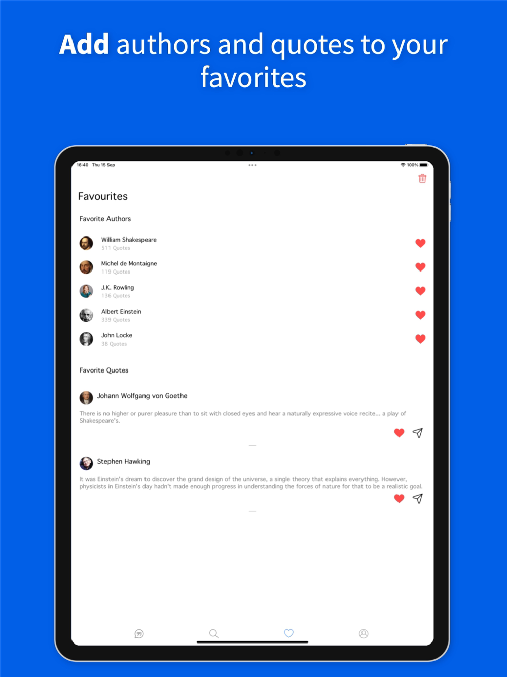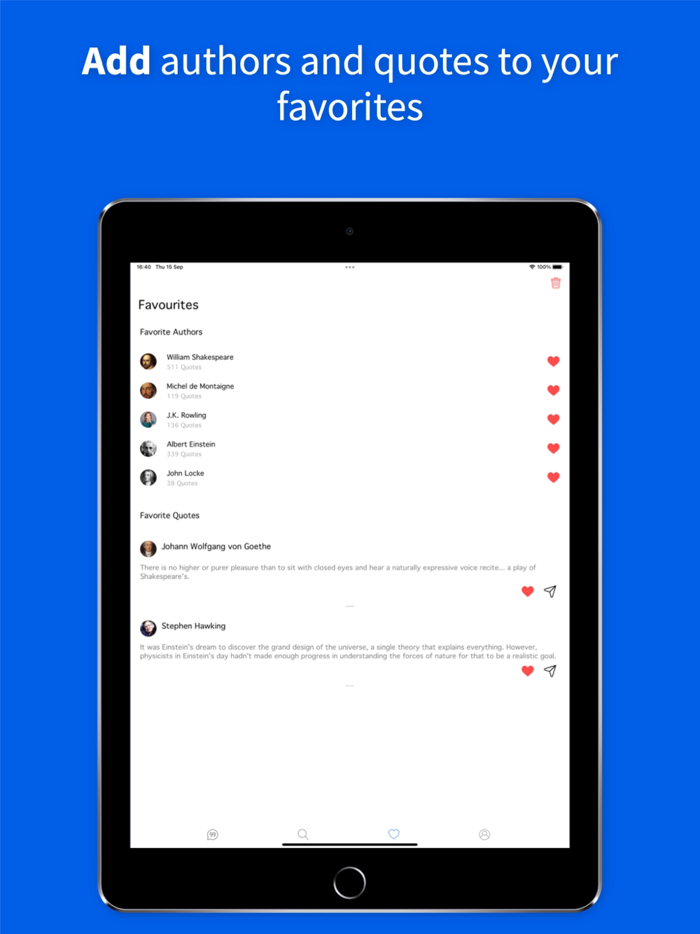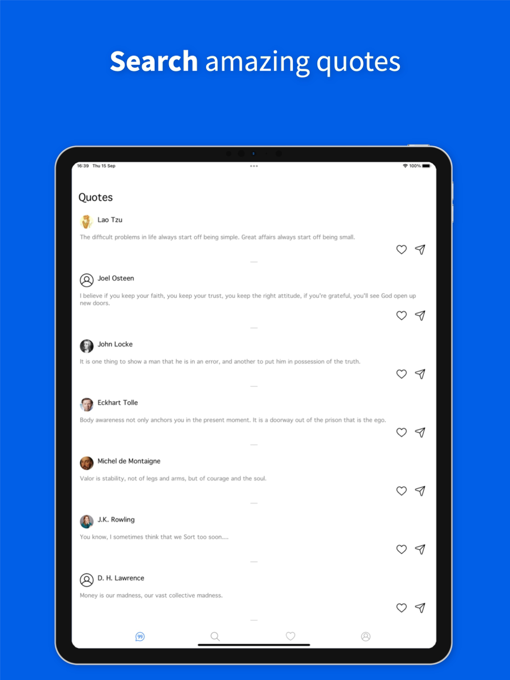 With Quoted you have 95,000 quotes from 2700 in 4 different languages to choose from, and you'll find the best quotes for your posts!