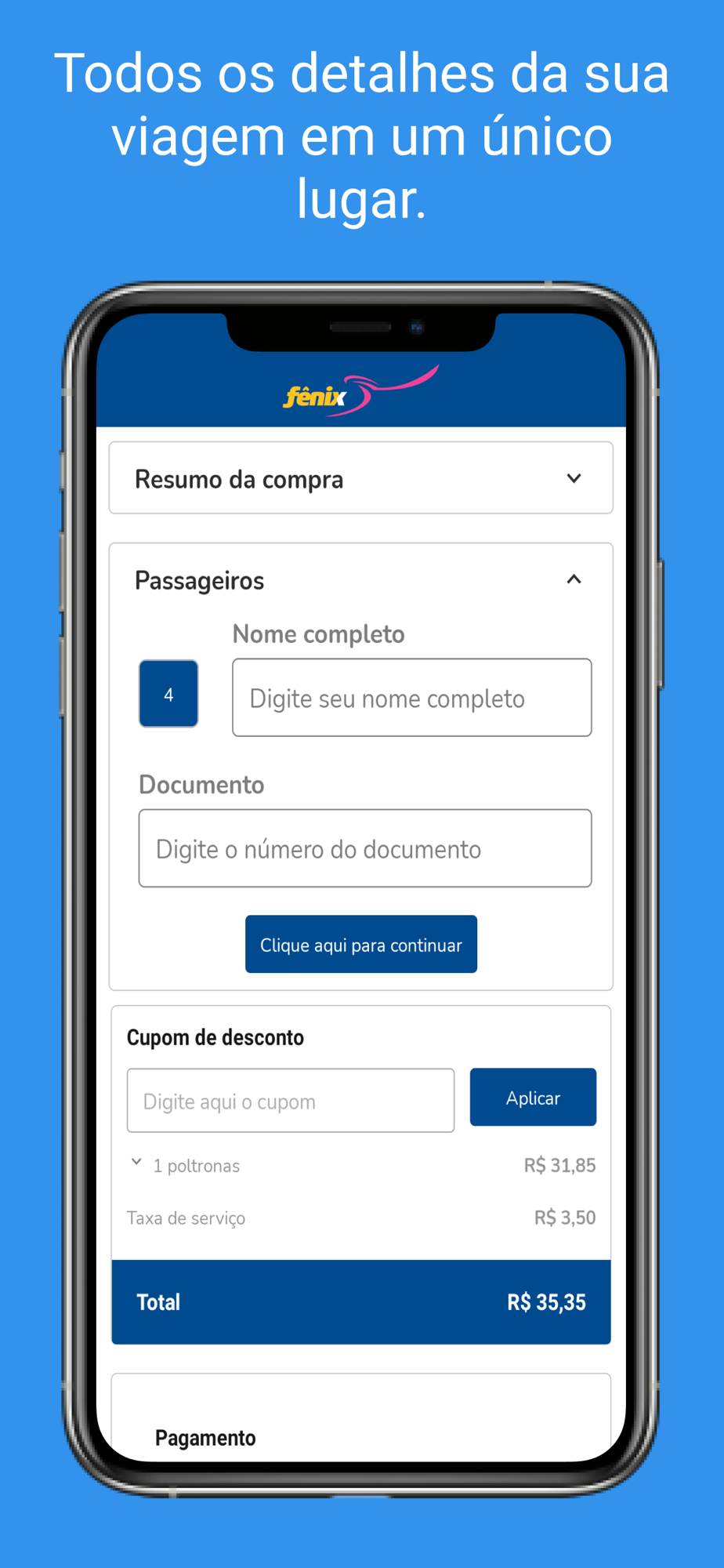 Aplicativo da operadora Rápido Fênix para venda de passagens rodoviárias.