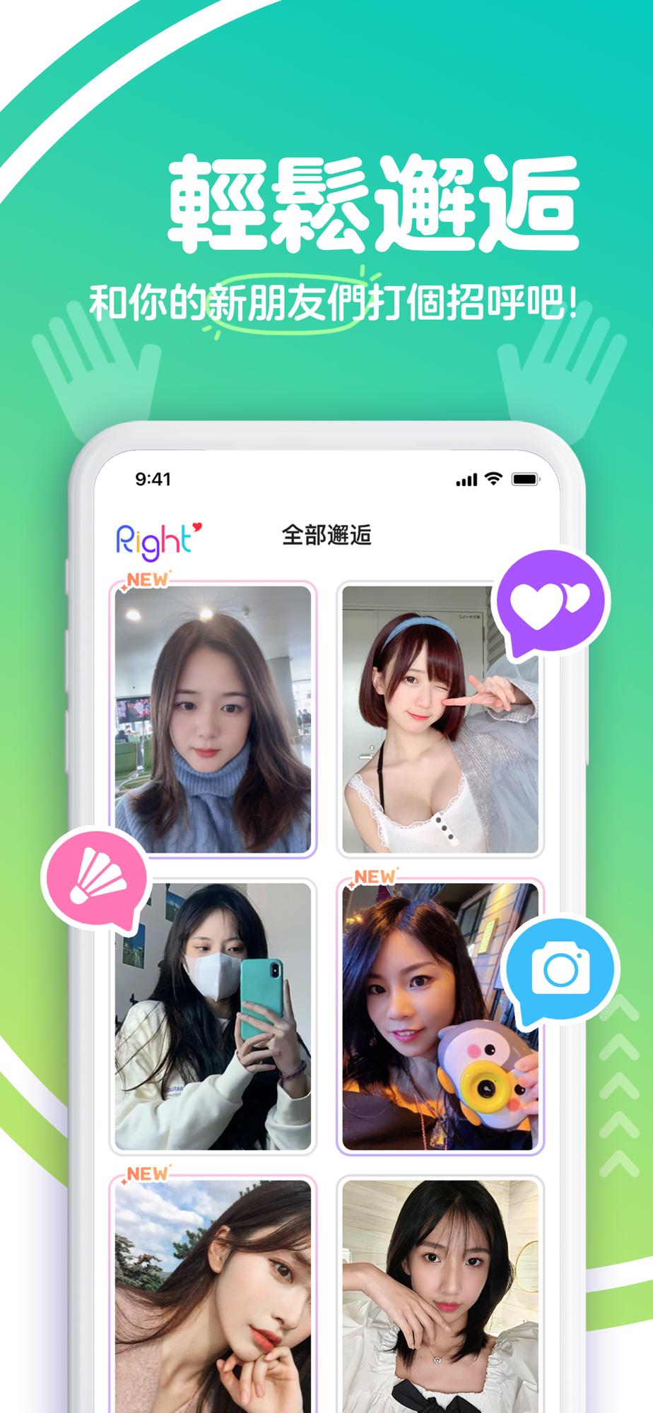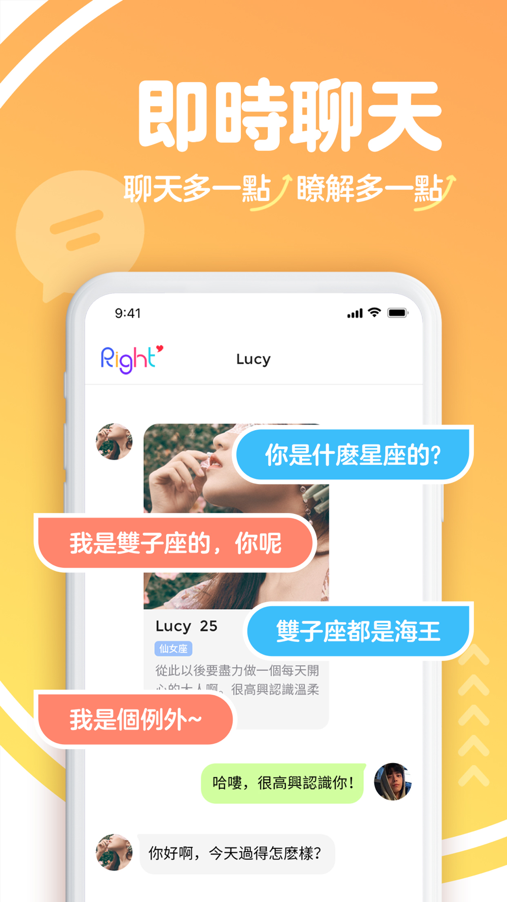 Right 是一款定位全球化的陌生交友軟體,專為單身帥哥正妹設計的交友軟體。