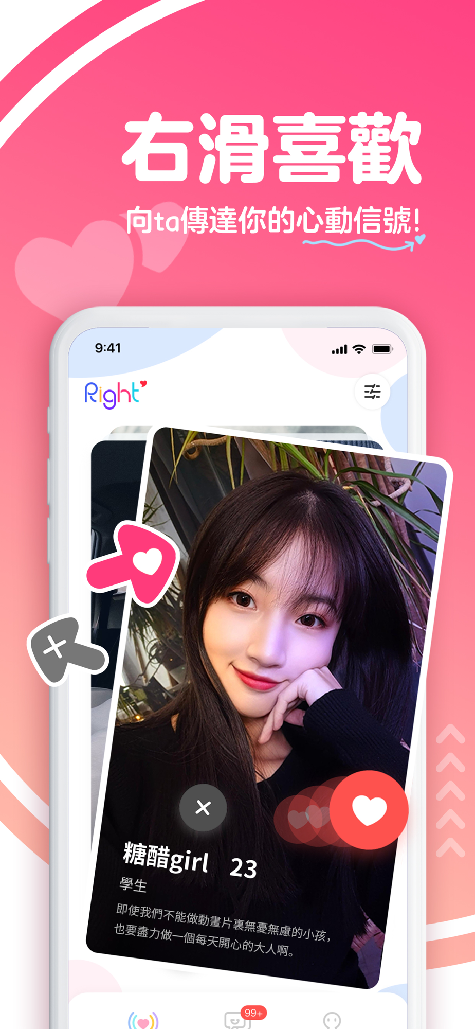 Right更是一種生活態度,跟喜歡的人聊天,跟喜歡的人match,不用擔心無用社交或推銷騷擾。