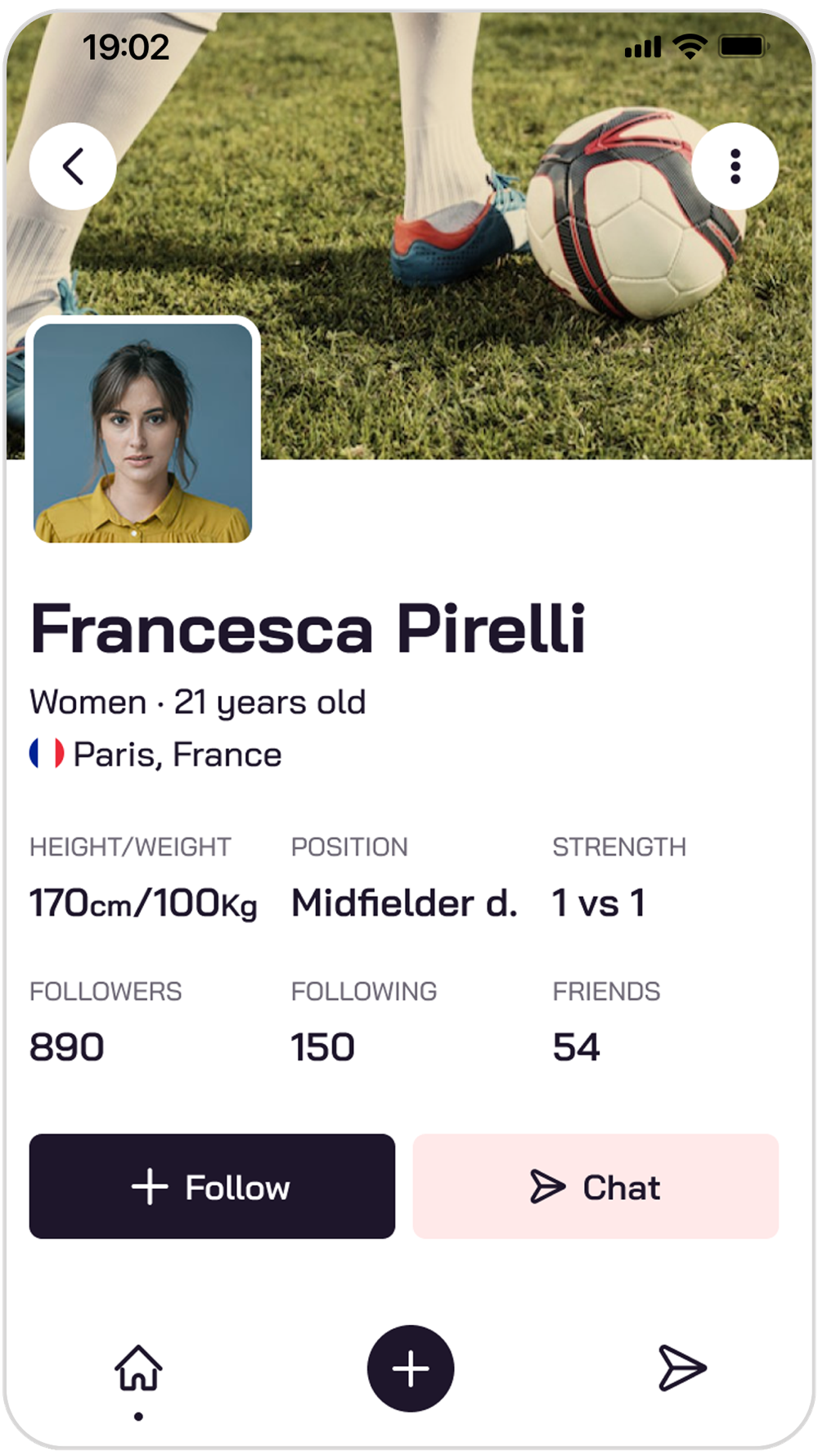 Connect with other players and officials. Chat and share your experiences. Keep your profile up -to date and always bring us your latest clips. Games and training, it does not matter – every action and movement can make the difference.