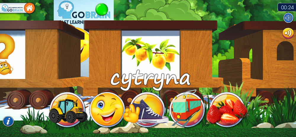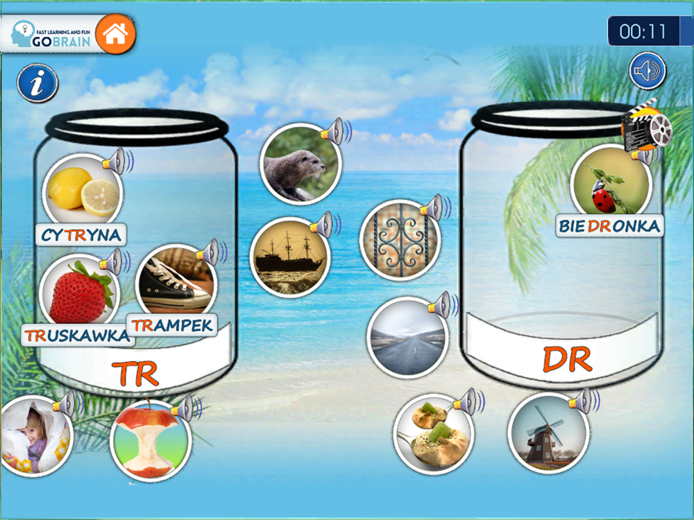 Należy dostosować poziom głośności do preferencji dziecka, w początkowej fazie ćwiczeń można dźwięki w tle wyciszyć przytrzymując ikonę z głośnikiem przez 1,5 sekundy. Funkcja ta automatycznie sama włączy się przy kolejnym zadaniu. Wyciszanie stosować w wyjątkowych przypadkach, ponieważ ta funkcja jest szczególnie wskazana u dzieci z nadwrażliwością słuchową, dzięki niej dziecko w miarę treningu uczy się ignorować dźwięki w tle a wrażliwość słuchowa normalizuje się.